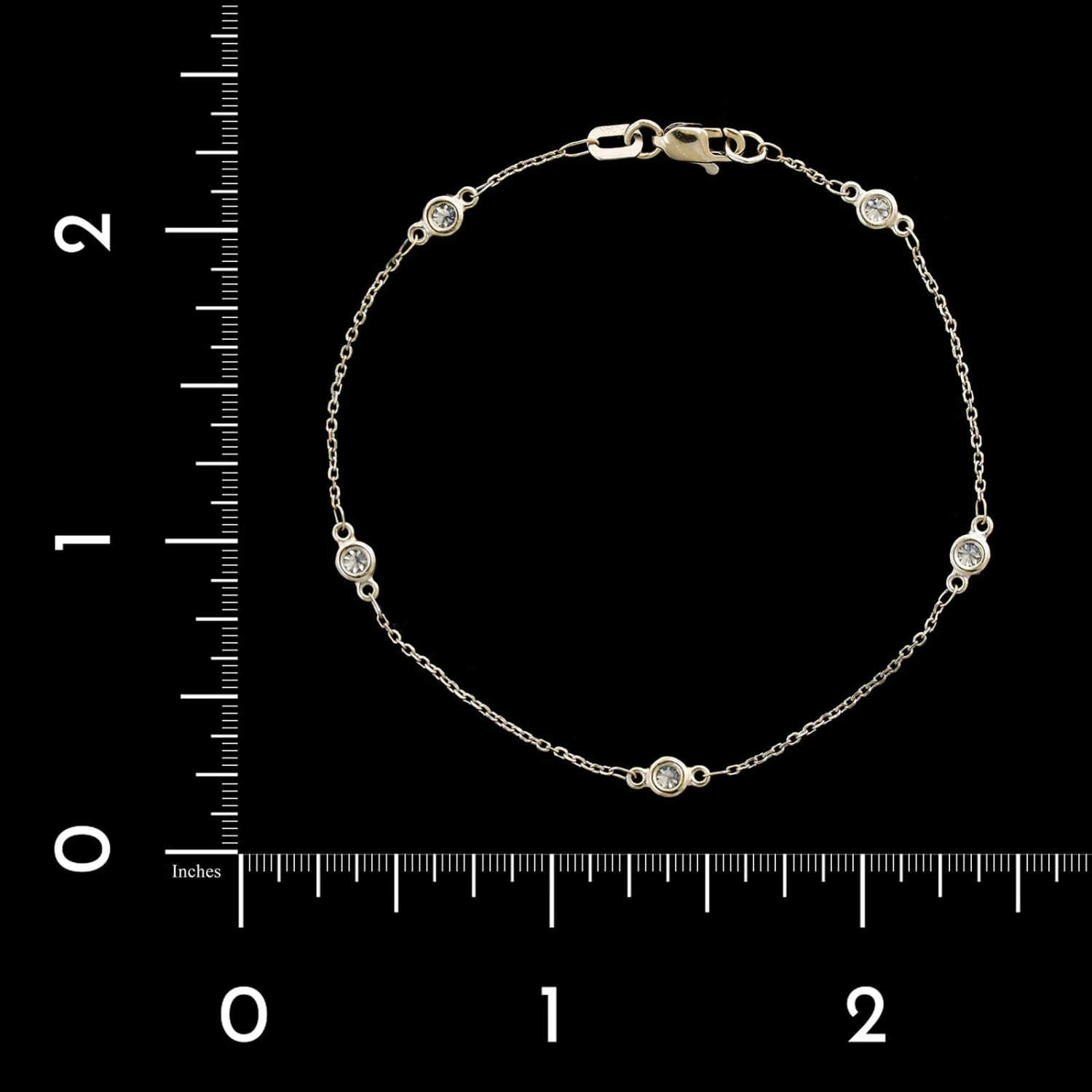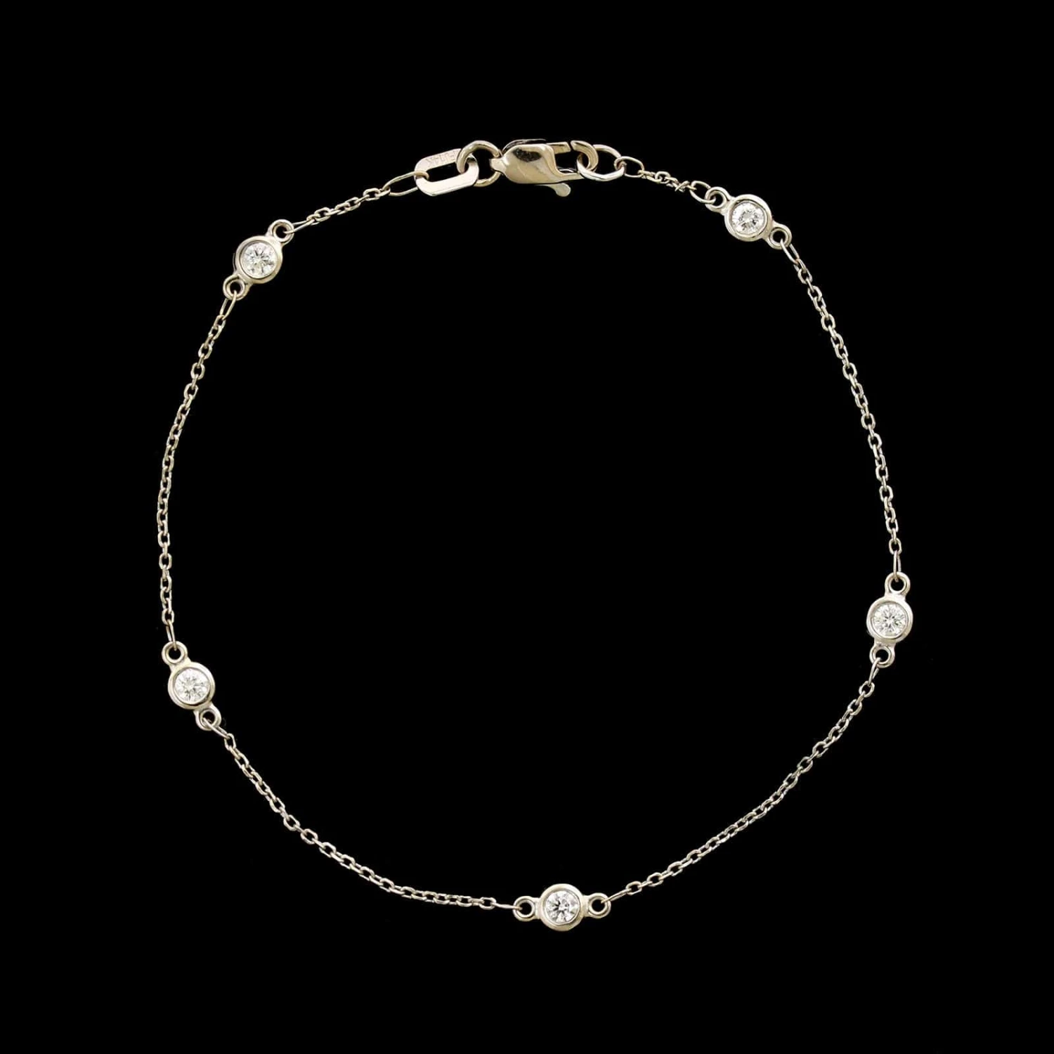 - The bracelet is bezel set with five full cut diamonds, approx. .30cttw.H/SI