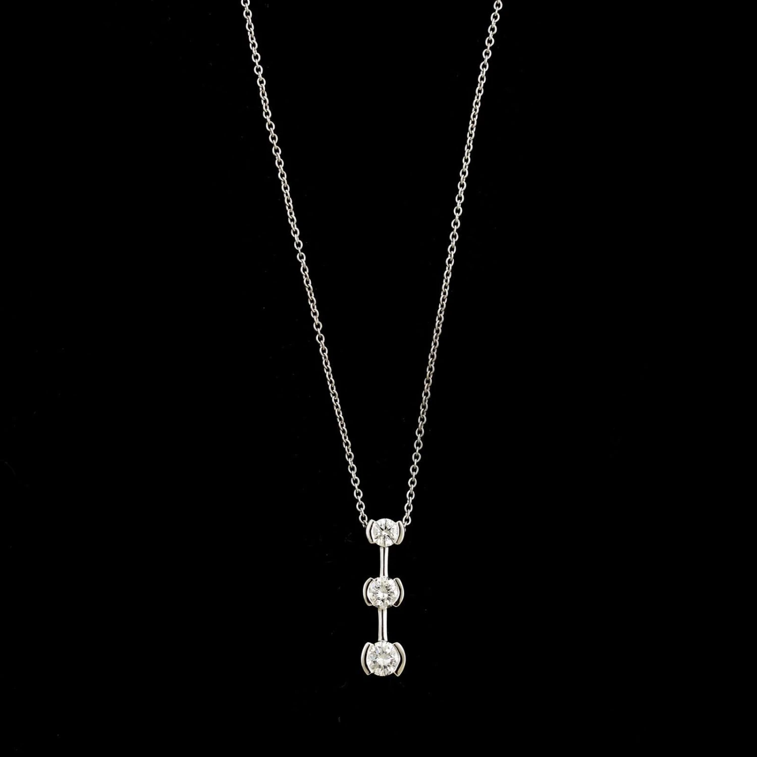 - The pendant is set with three full cut diamonds
