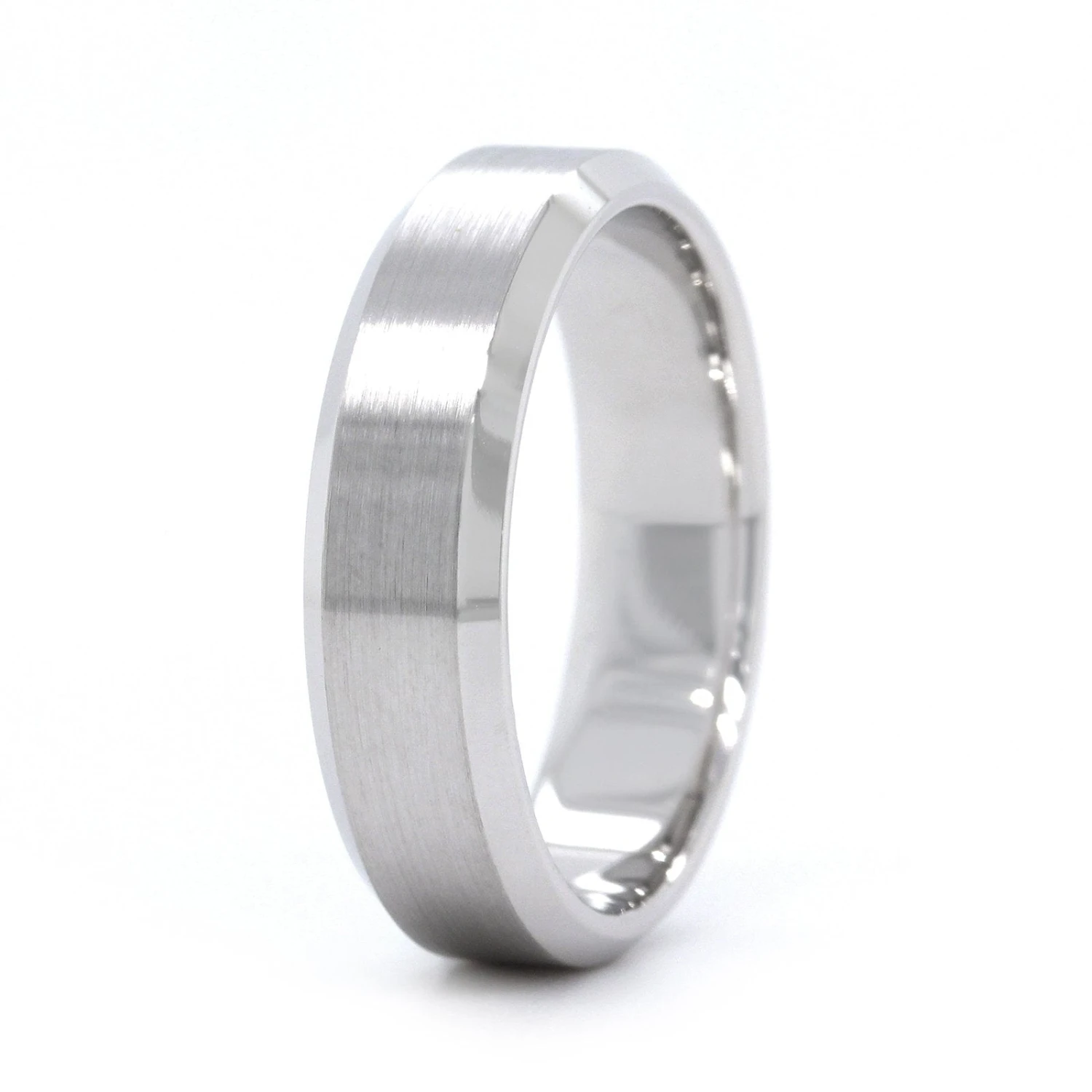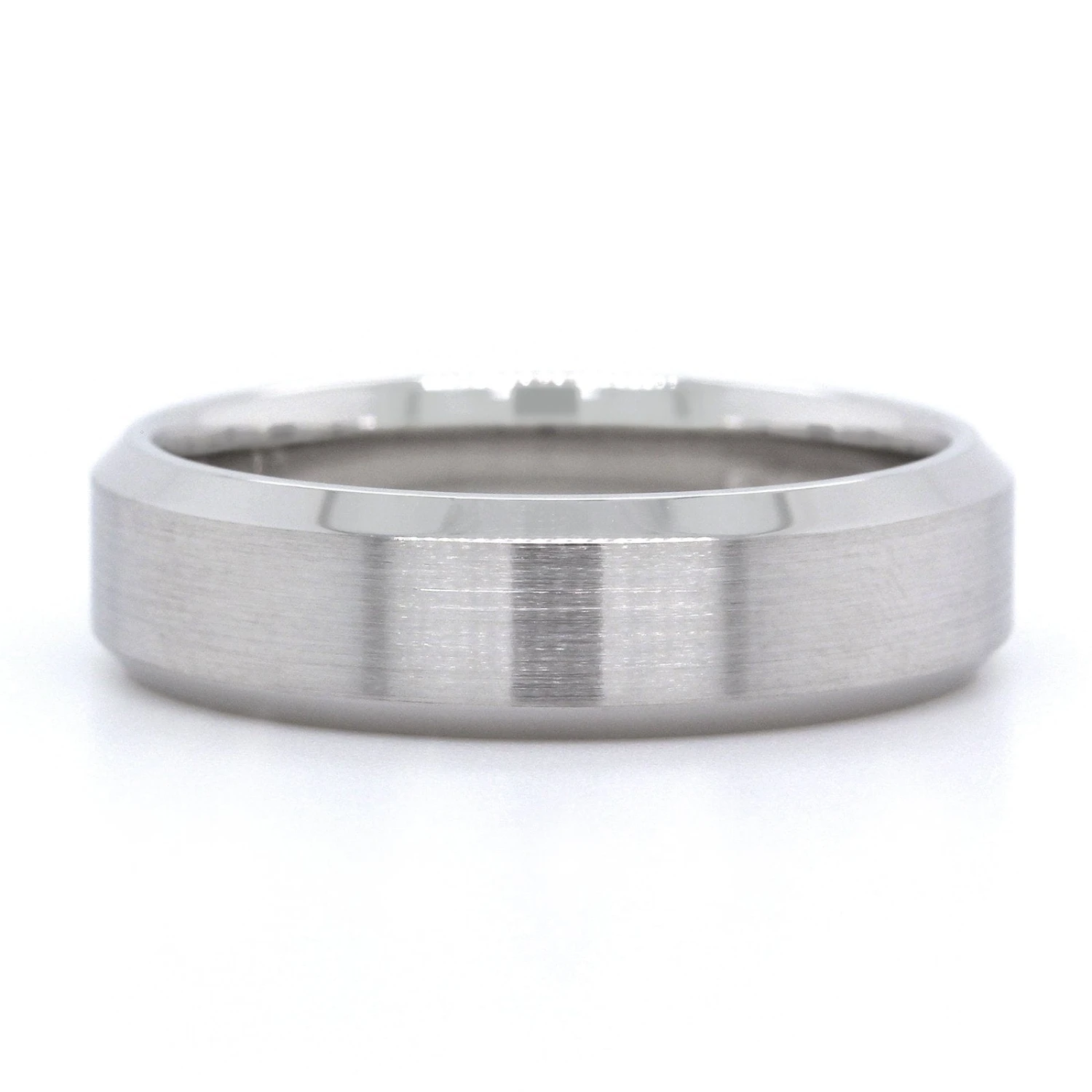14K White Gold Satin Center With Beveled Edge Band