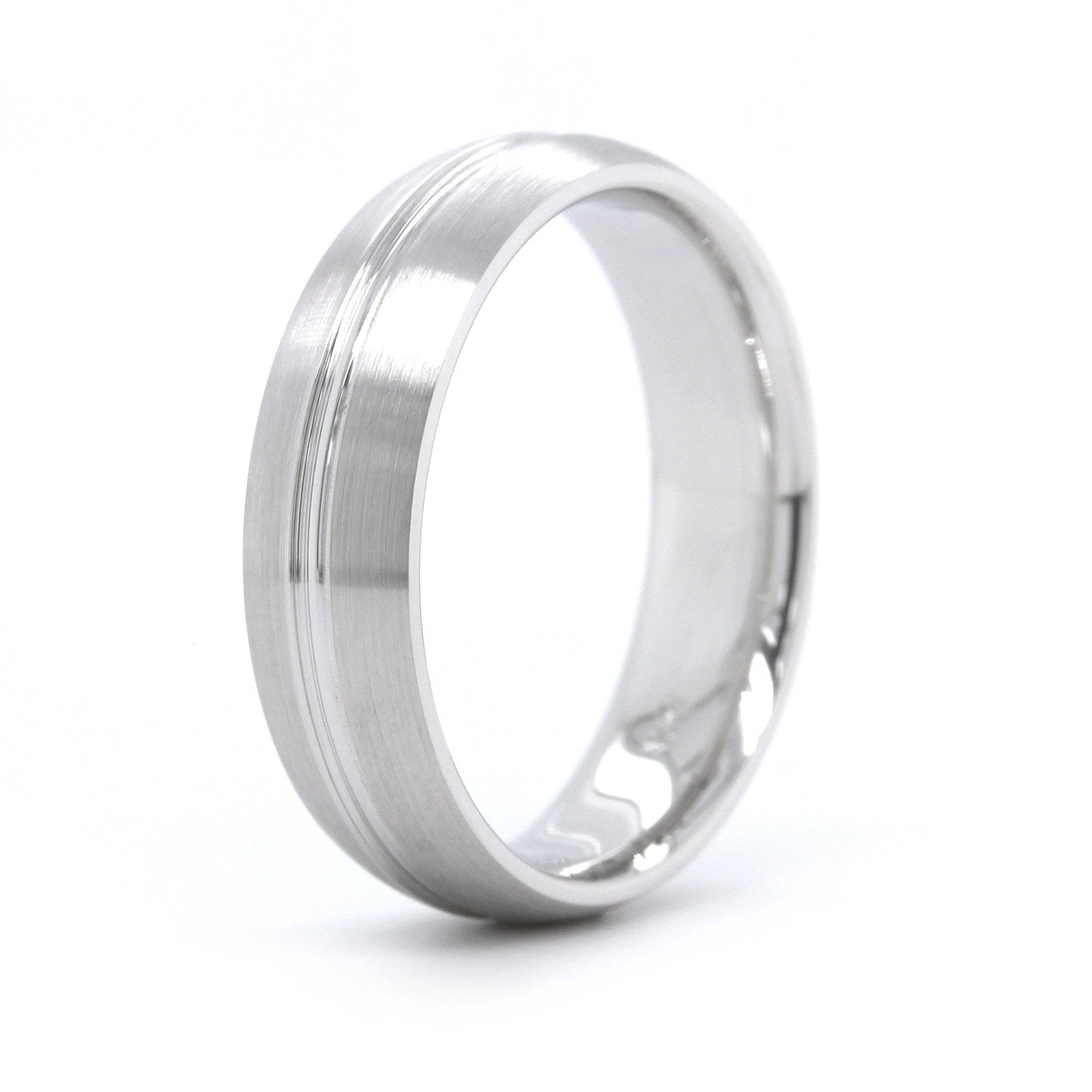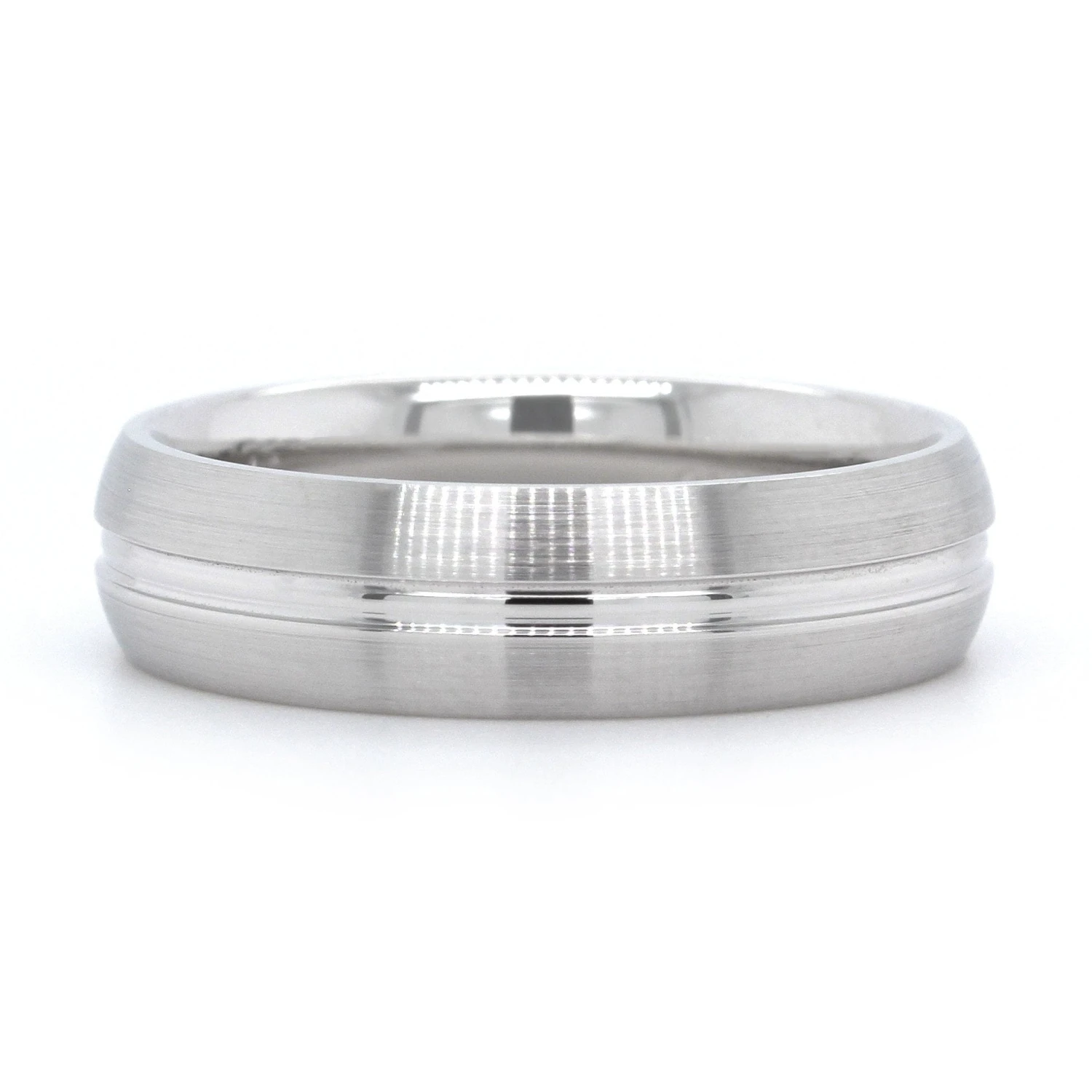 14K White Gold Satin Finish With Groove Center Band