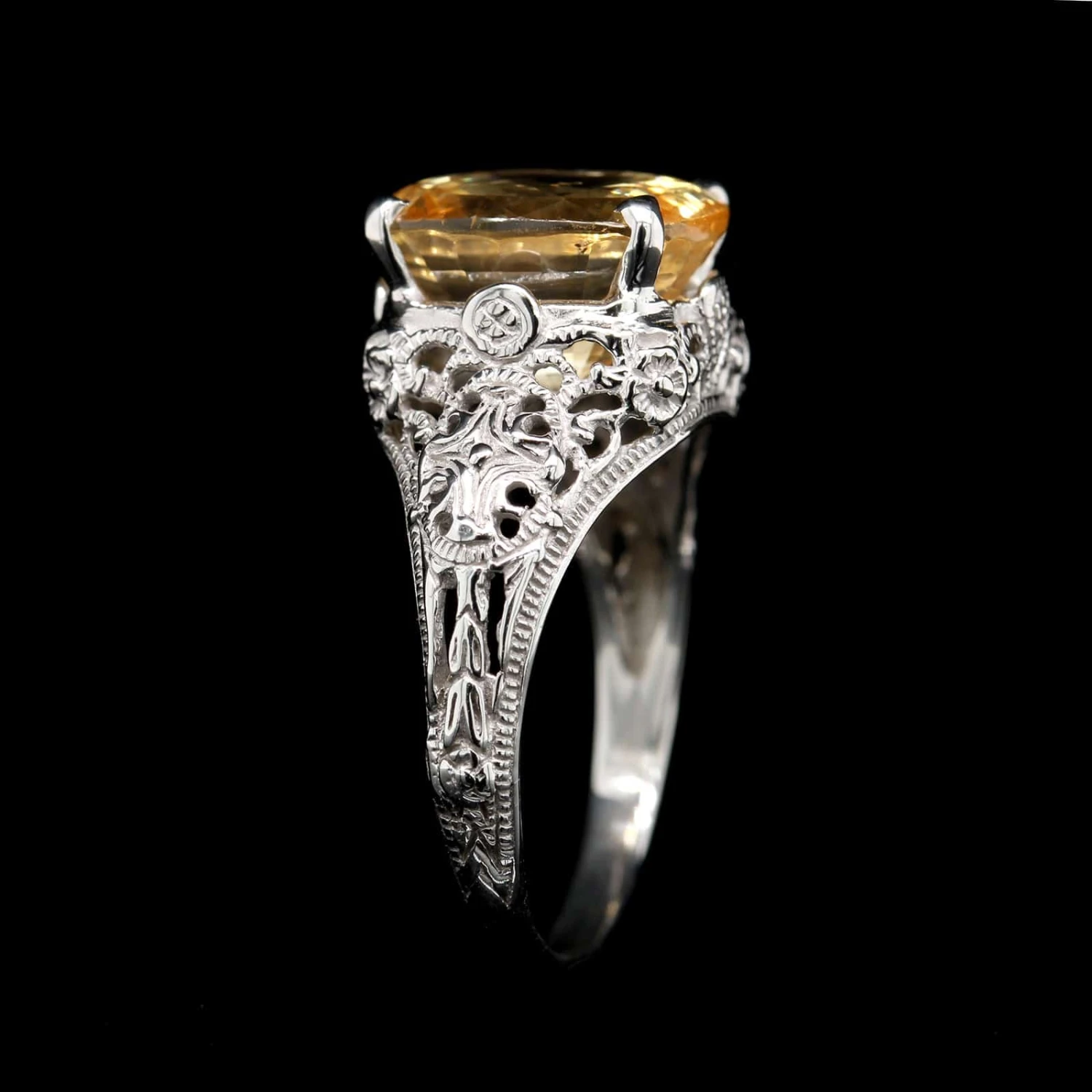 - 14K White Gold Yellow Estate Sapphire Ring