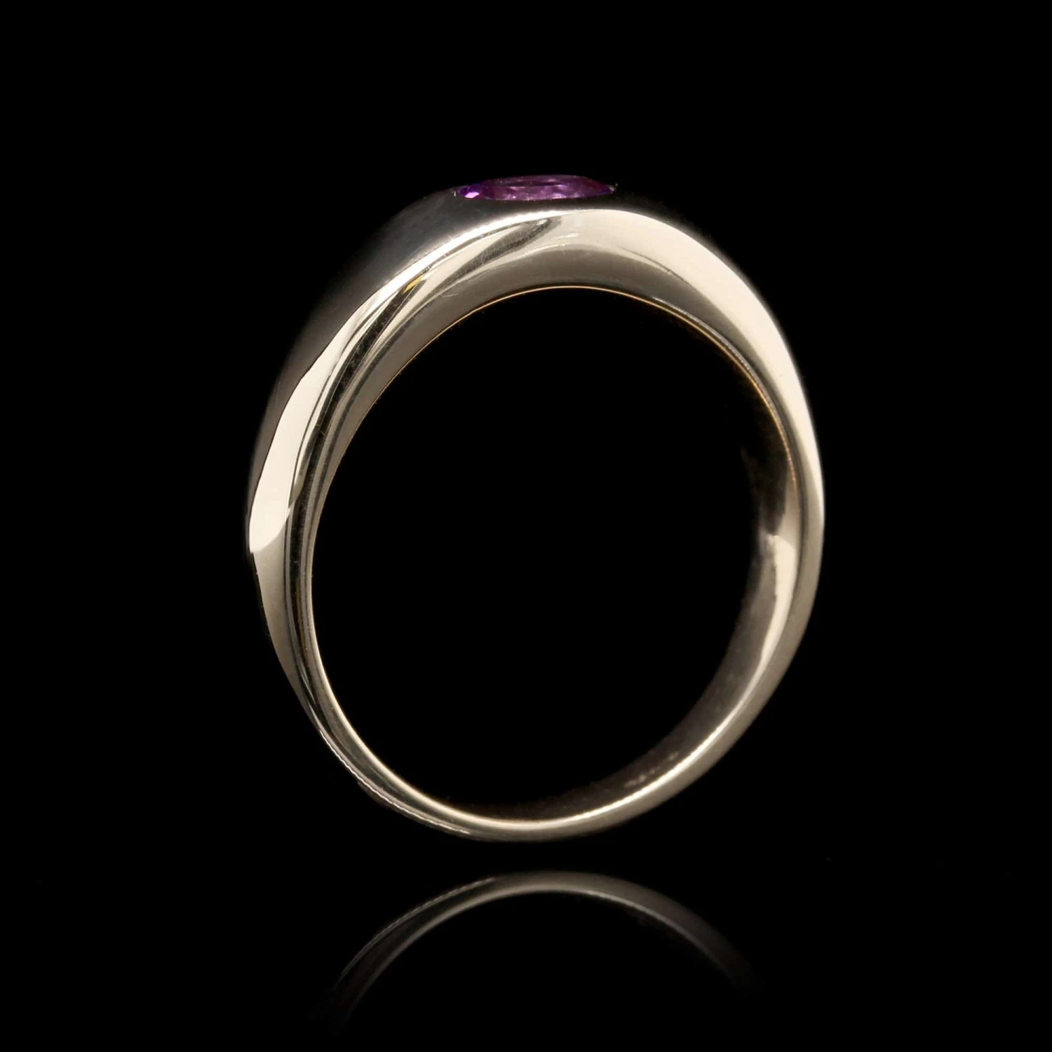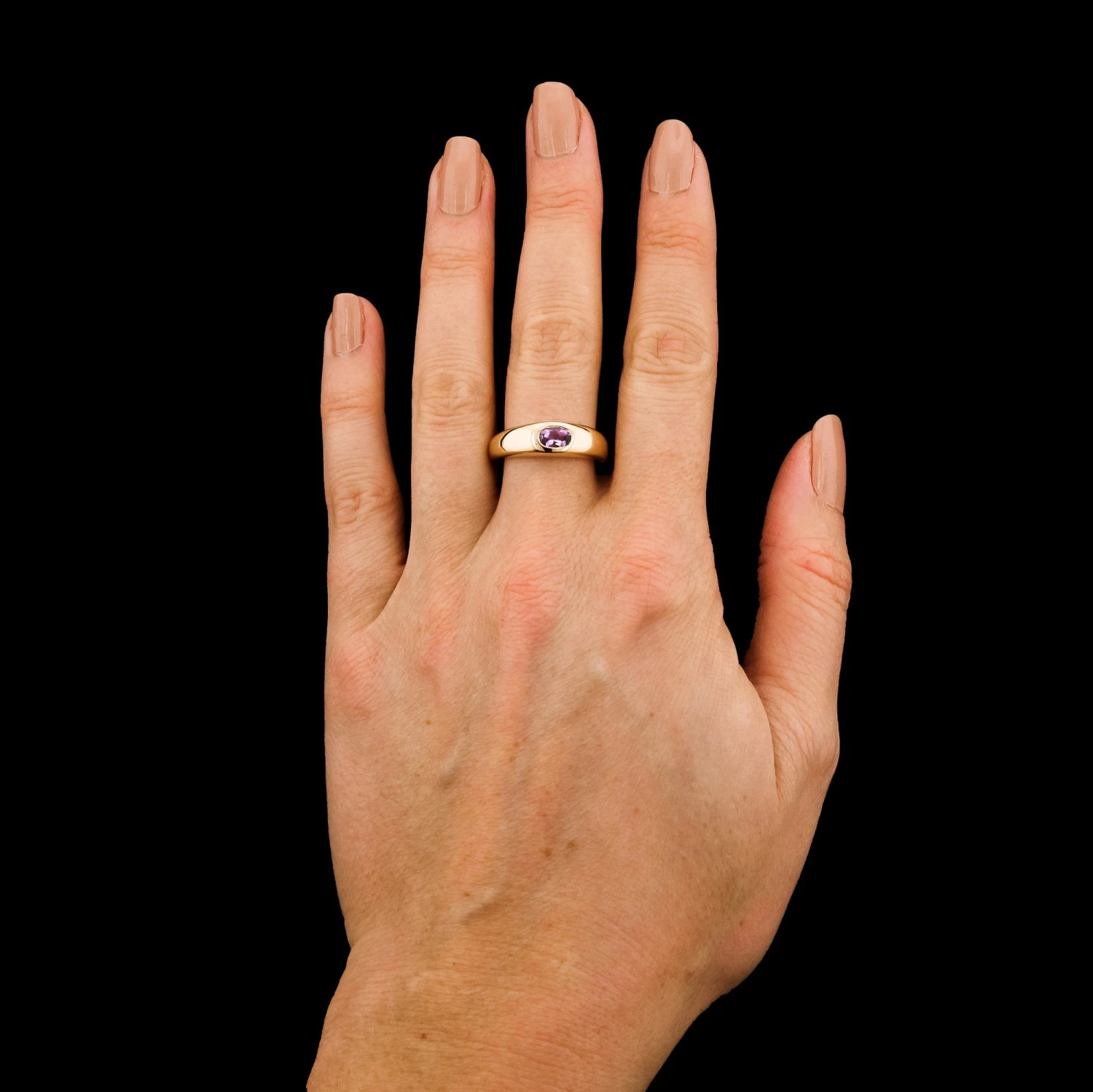 The ring is flush set with one oval cut amethyst weighing .43cts., size 7 3/4.