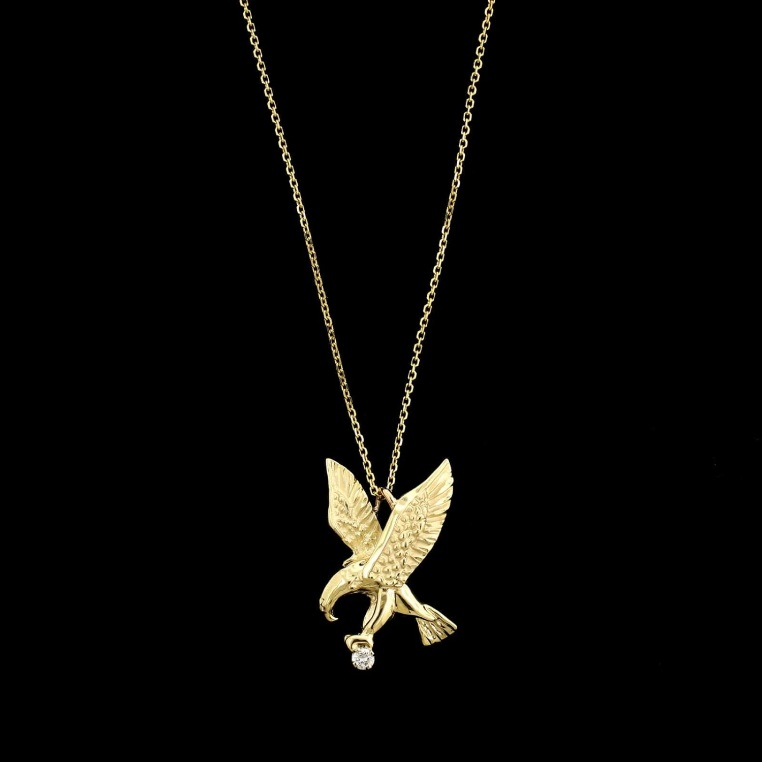 - 14K Yellow Gold Estate Diamond Eagle Pendant Necklace