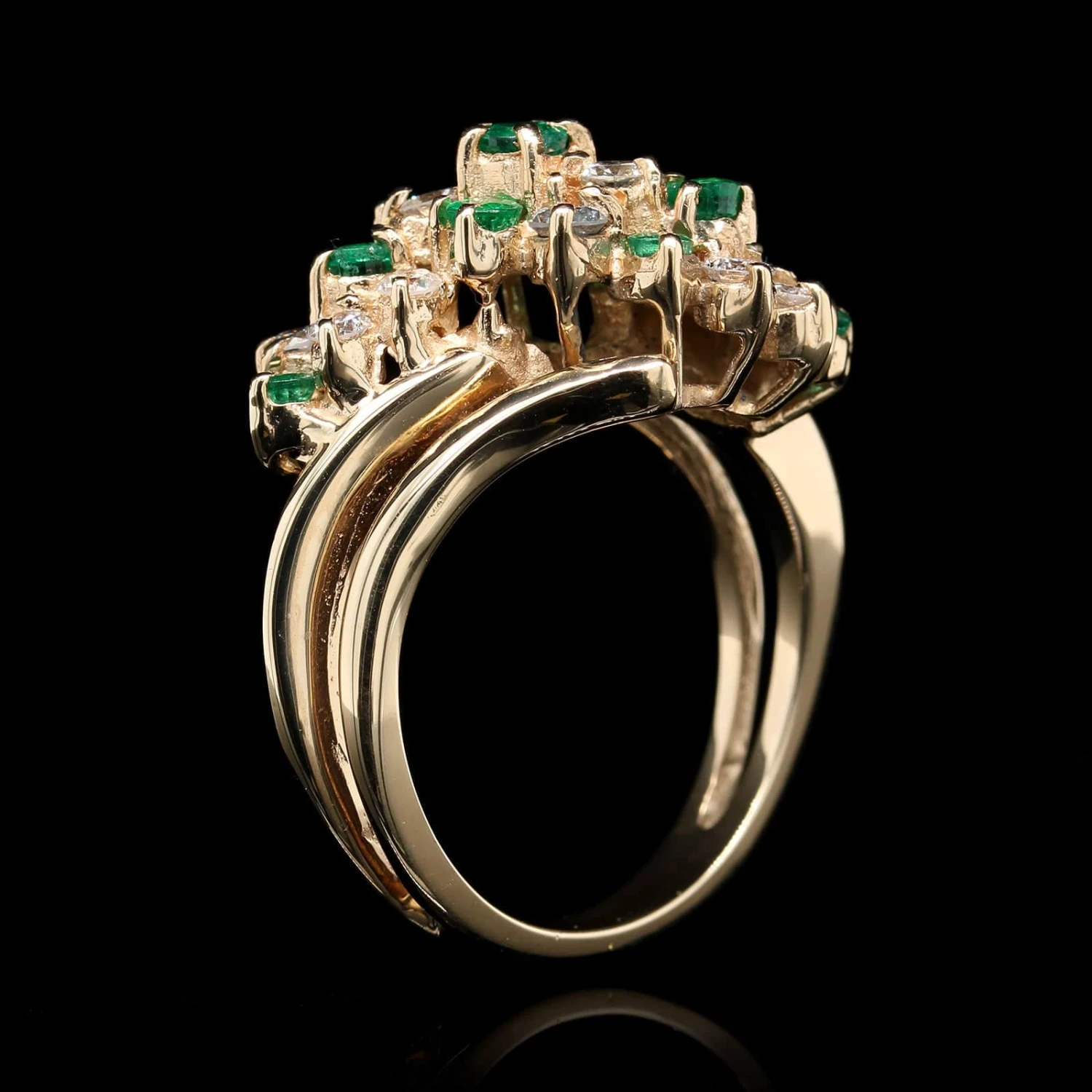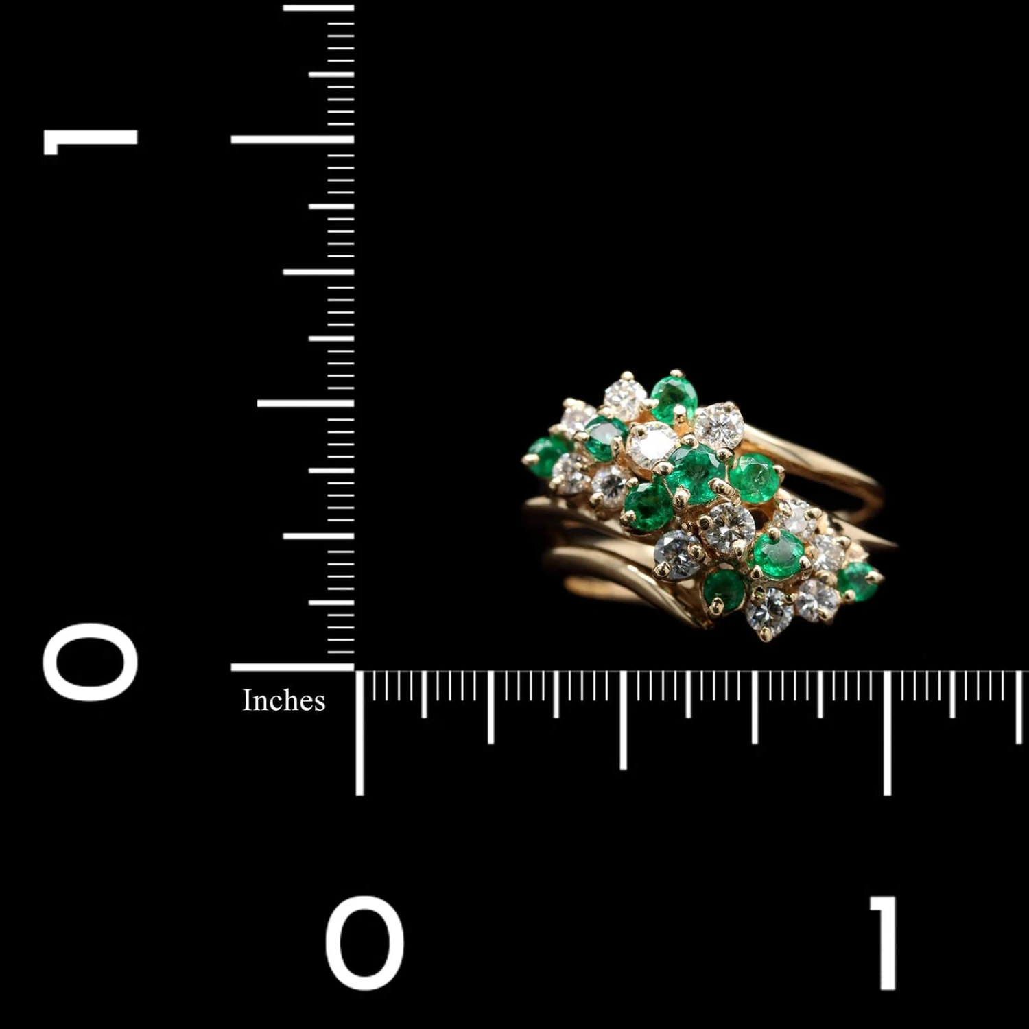 - 14K Yellow Gold Estate Emerald and Diamond Ring