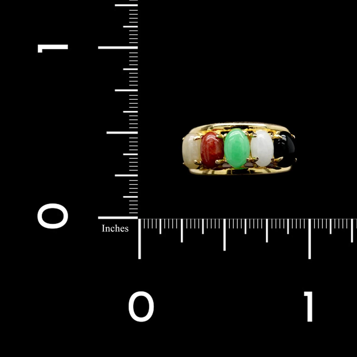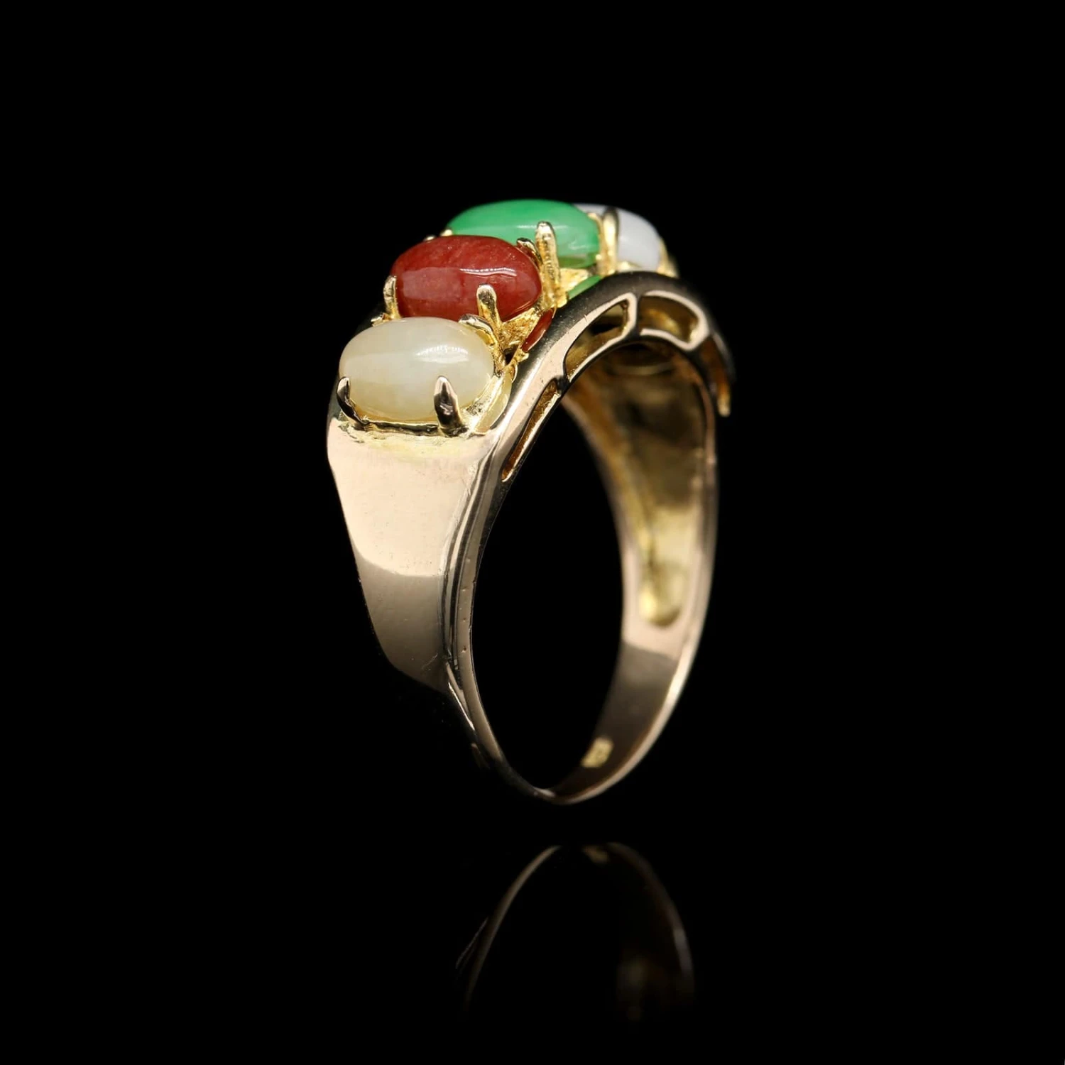- 14K Yellow Gold Estate Multi Colored Jade Ring