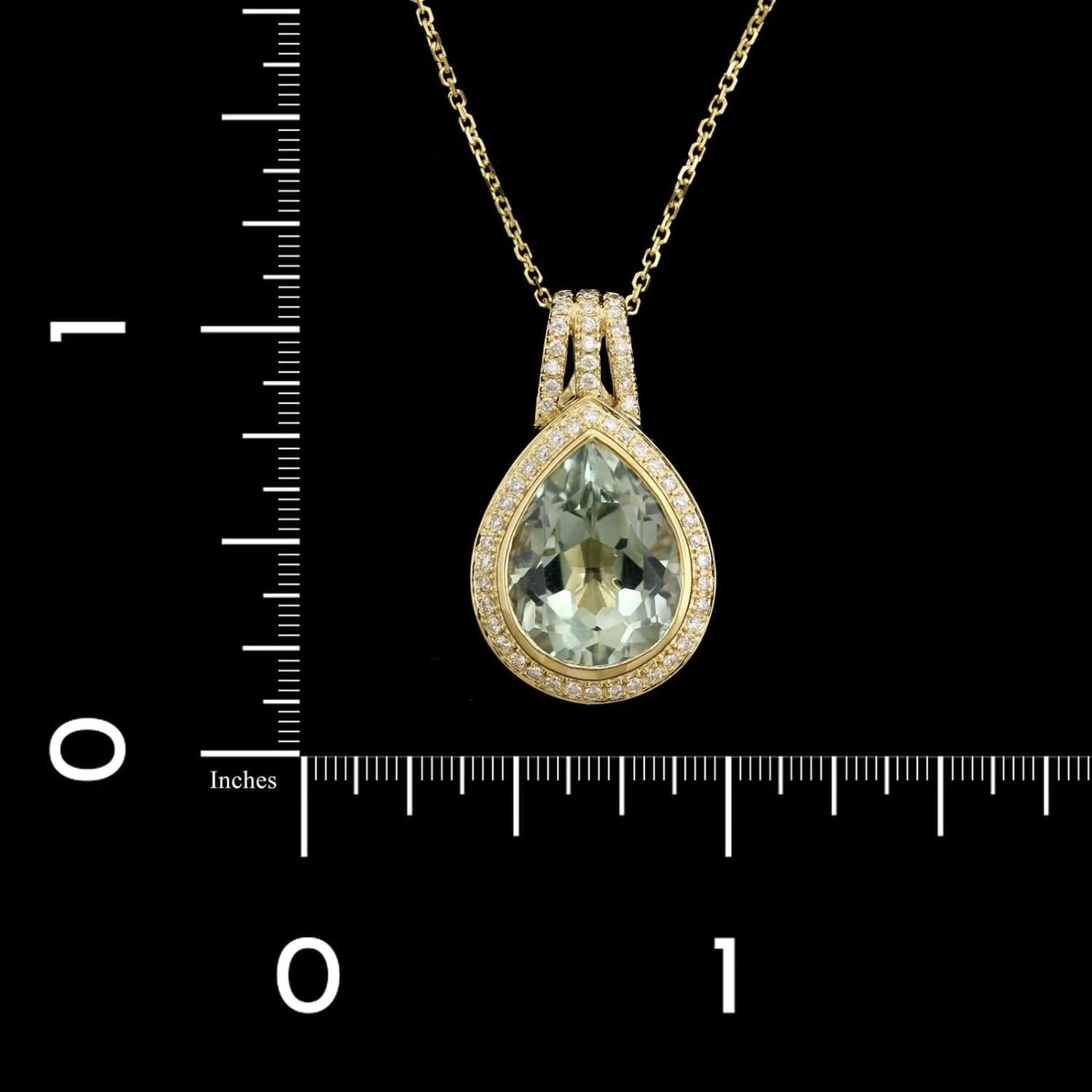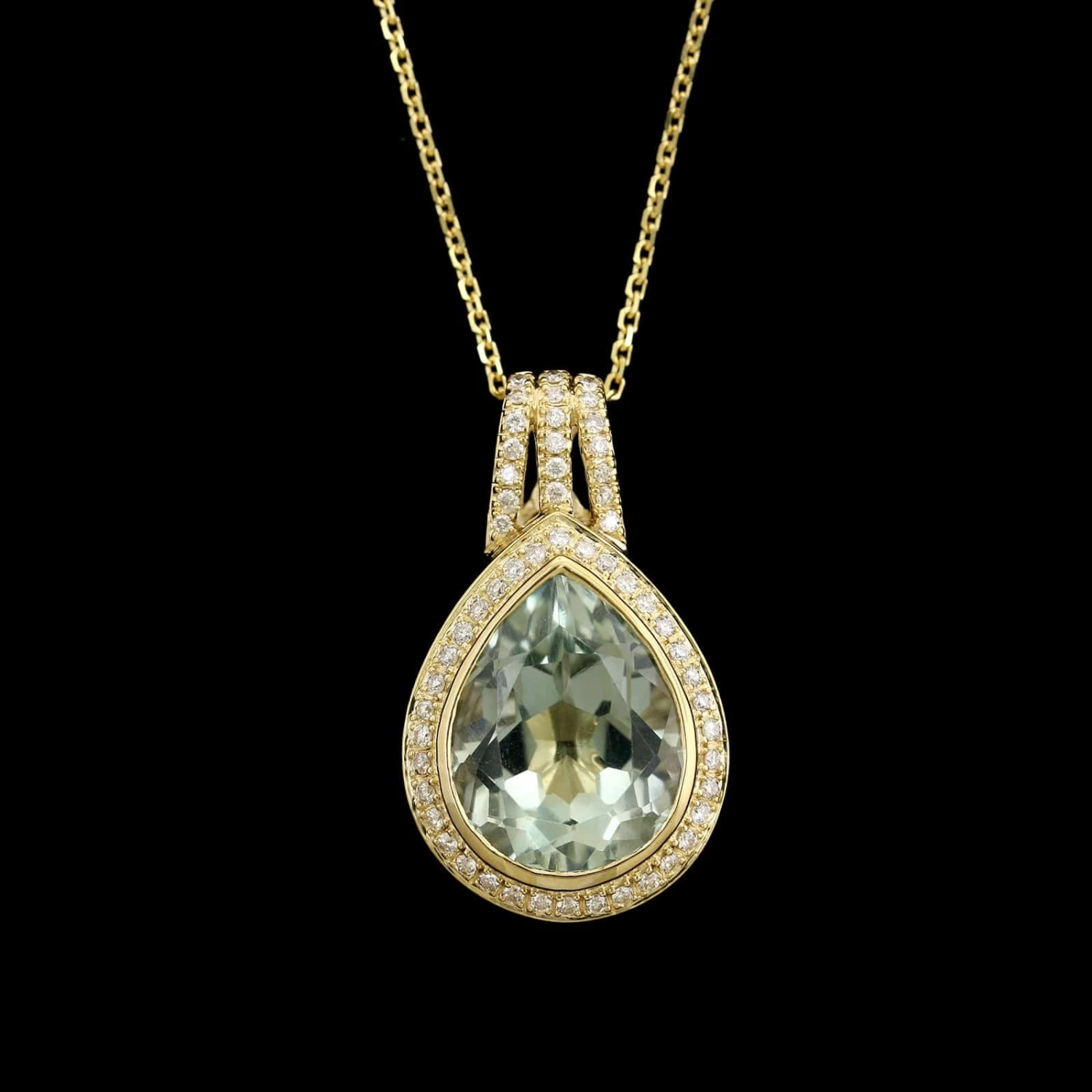14K Yellow Gold Estate Prasiolite And Diamond Pendant Necklace