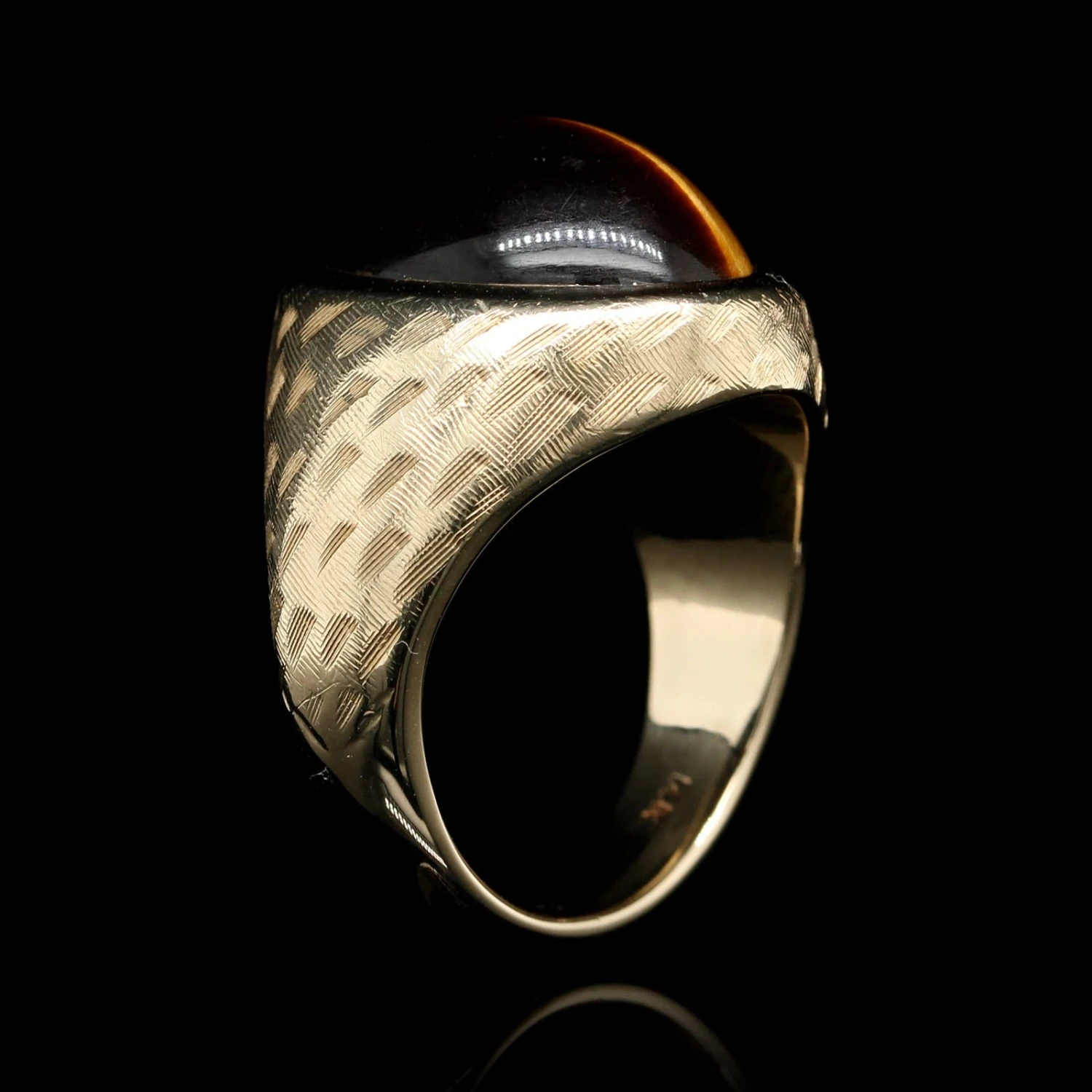 - 14K Yellow Gold Estate Tiger’s Eye Cabochon Ring