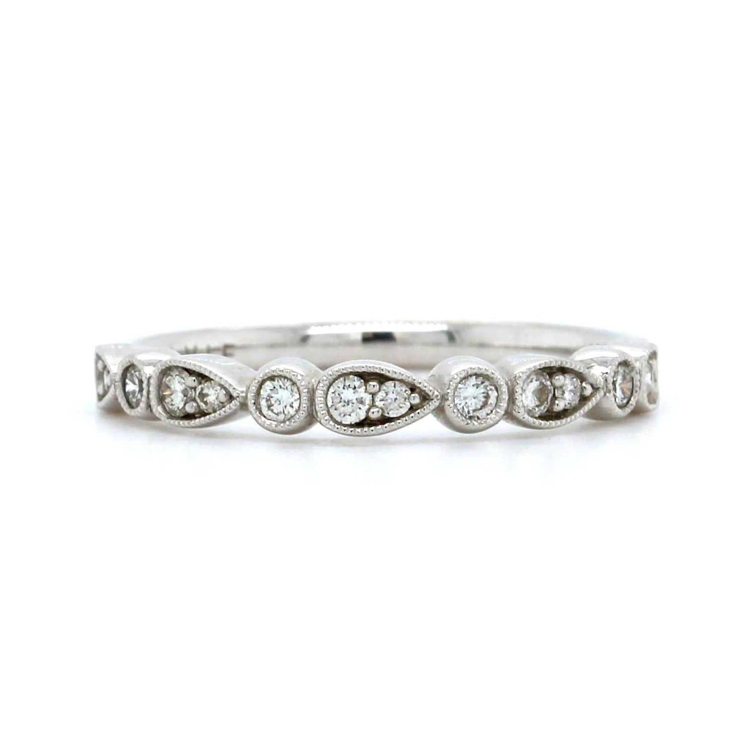 18K White Gold Alternating Round And Teardrop Wedding Band