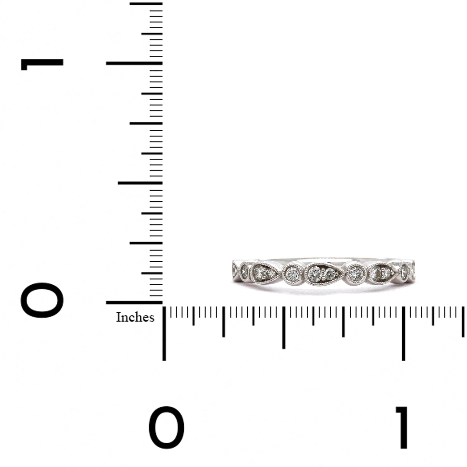 Be the first to review “18K White Gold Alternating Round And Teardrop Wedding Band” Cancel reply