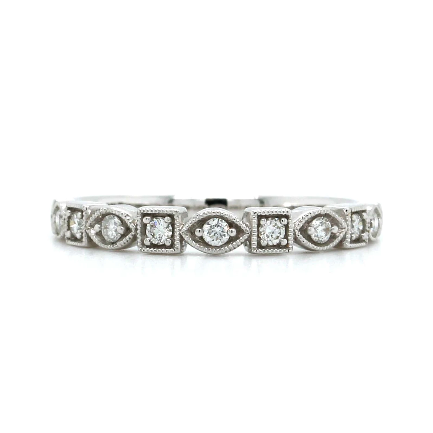Be the first to review “18K White Gold Alternating Square And Marquise Wedding Band” Cancel reply