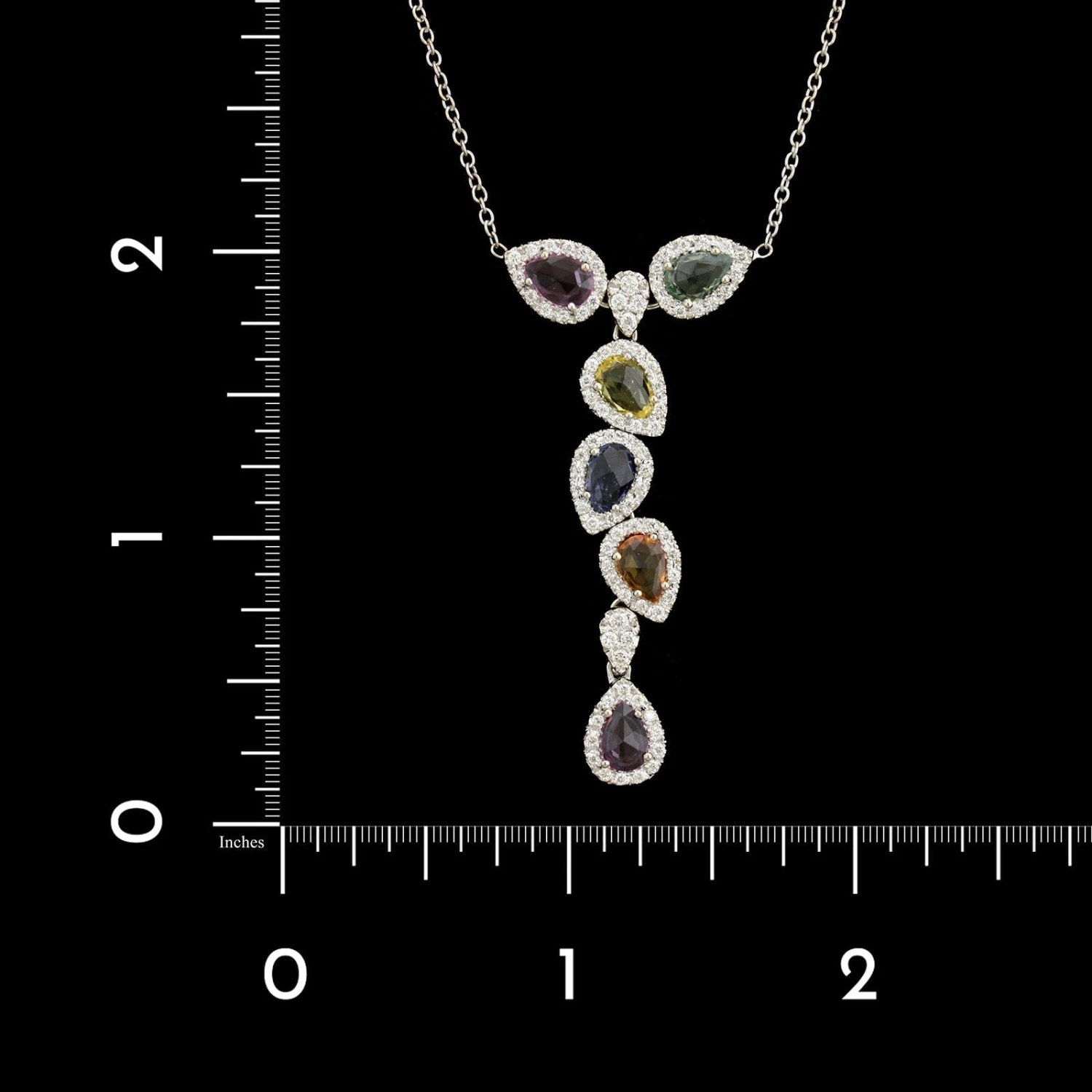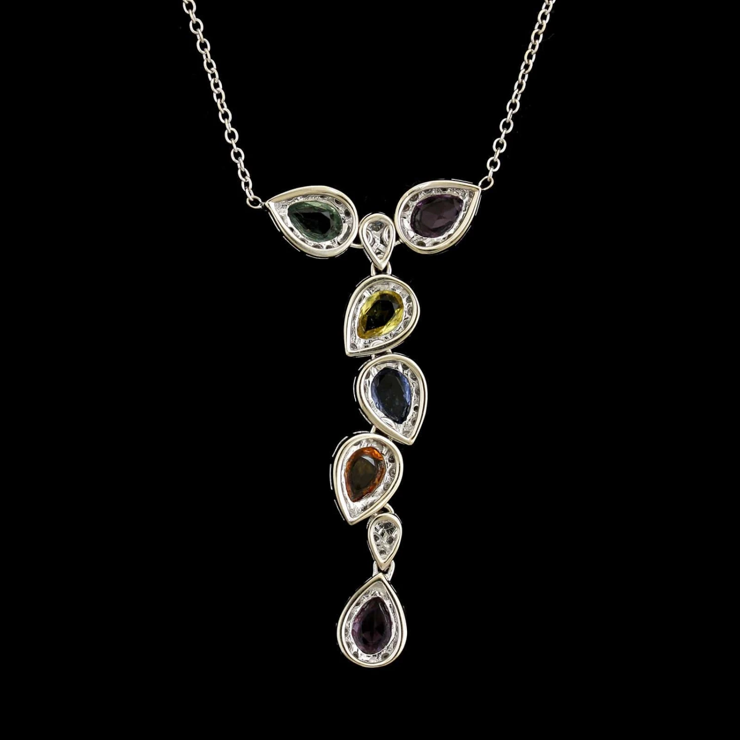 - 18K White Gold Estate Multicolored Sapphire and Diamond Necklace