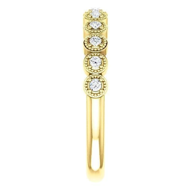 18K Yellow Gold Bezel Milgrain Diamond Band