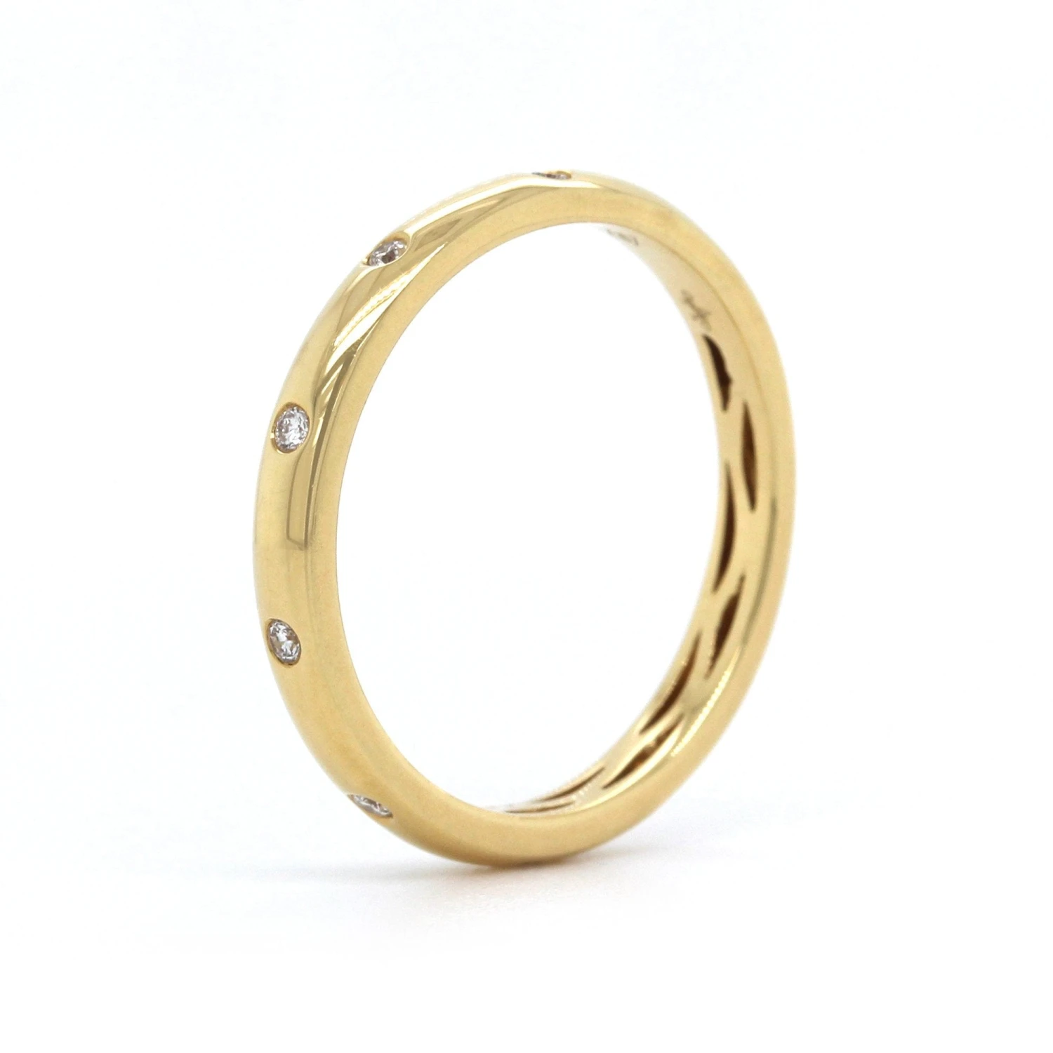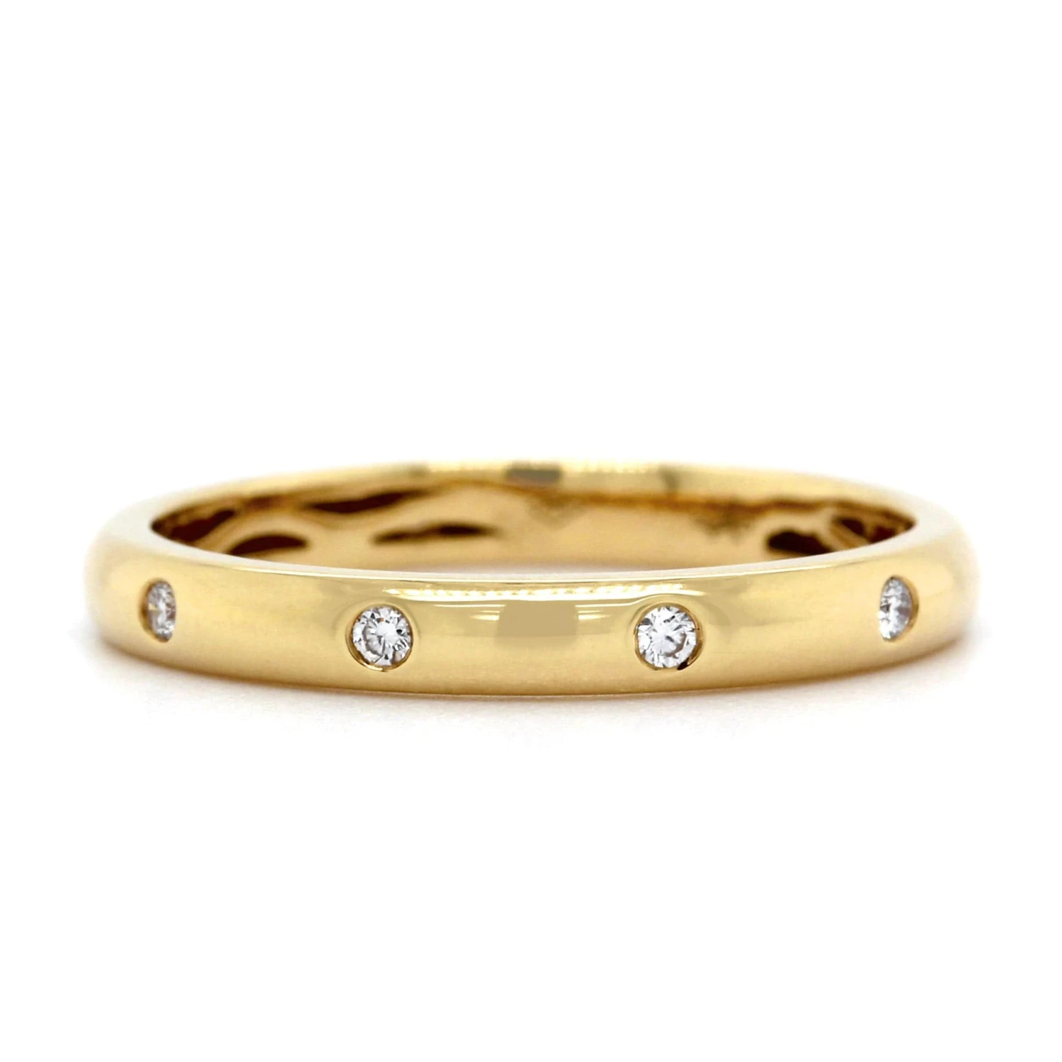 18k yellow gold eternity band with 10 burnished round diamonds.