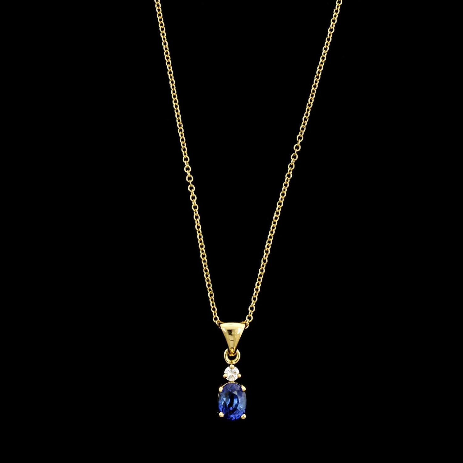 - The pendant is set with one oval cut sapphire weighing 1.15cts.