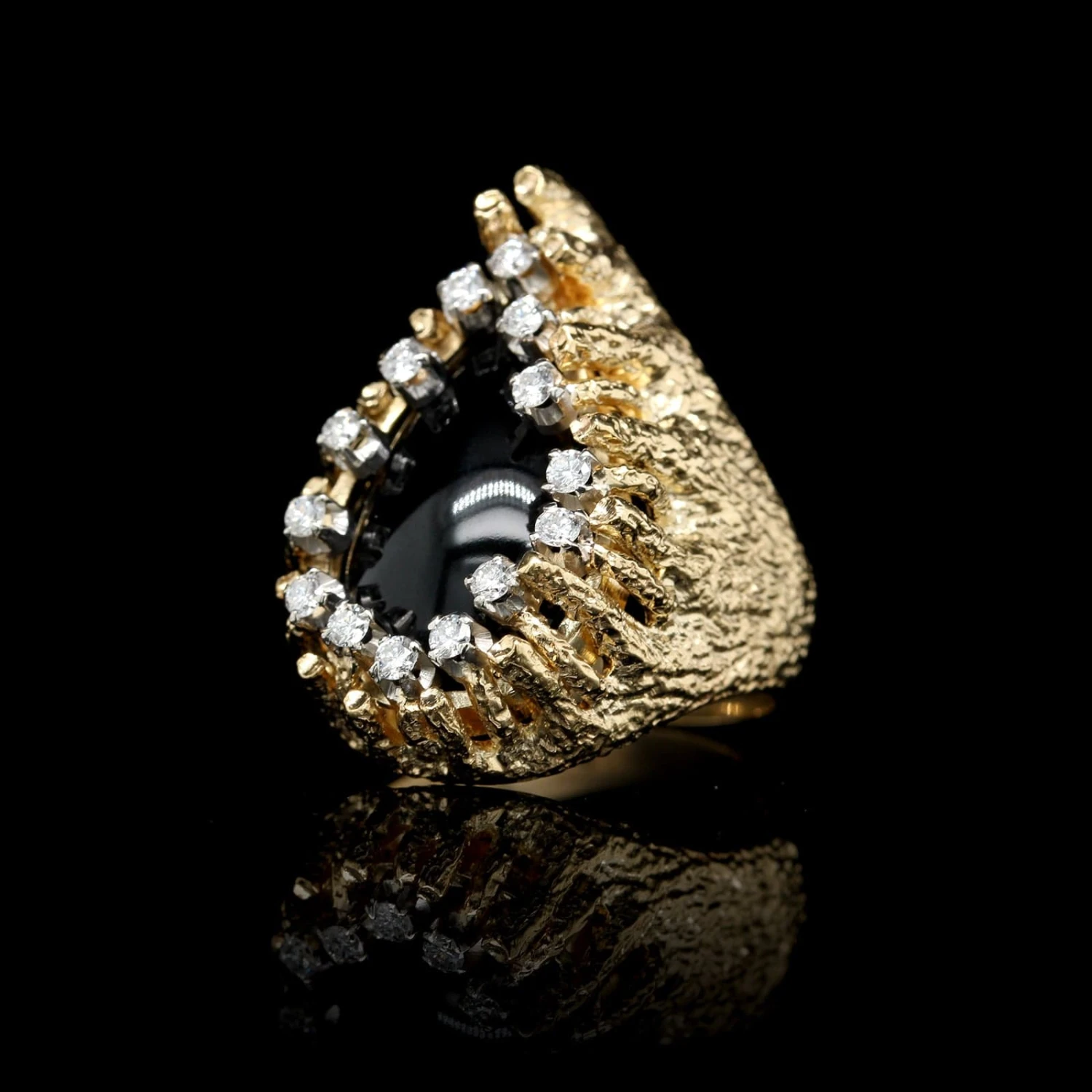 - 18K Yellow Gold Onyx Estate Diamond Ring