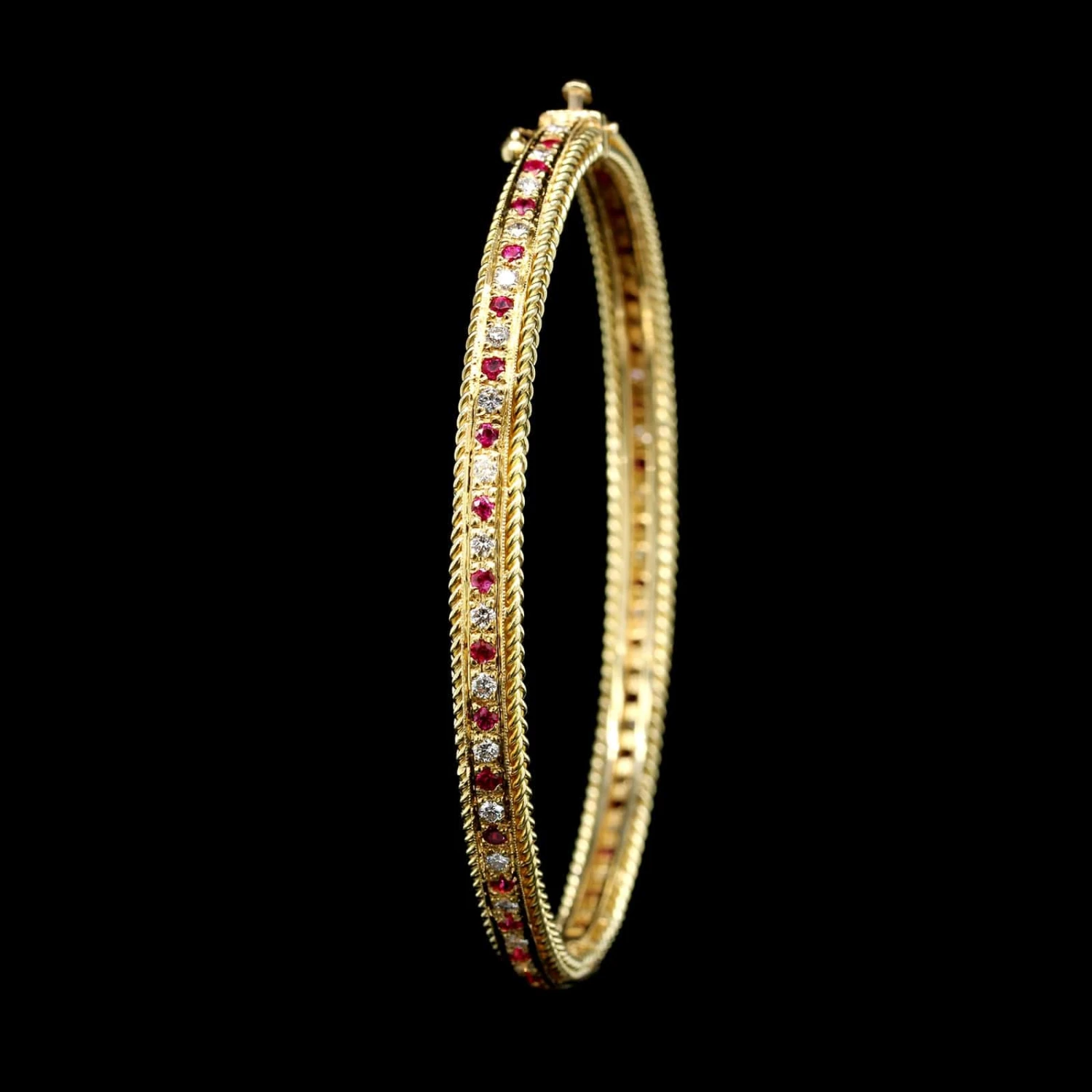 A.G.A. Correa & Sons 18K Yellow Gold Estate Diamond And Ruby Rope Bands Bangle
