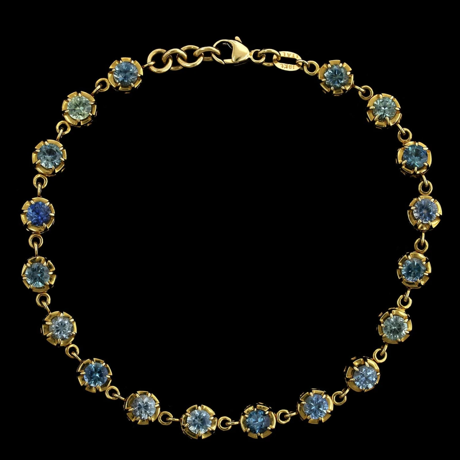 - The bracelet is set with 18 round Montana sapphires