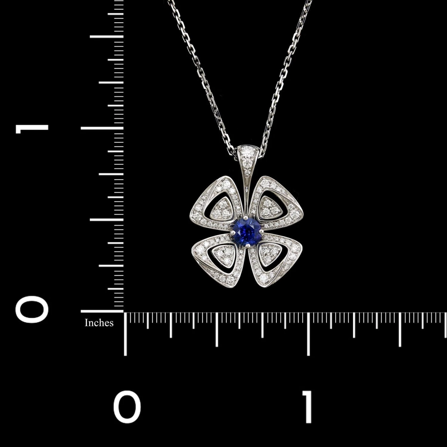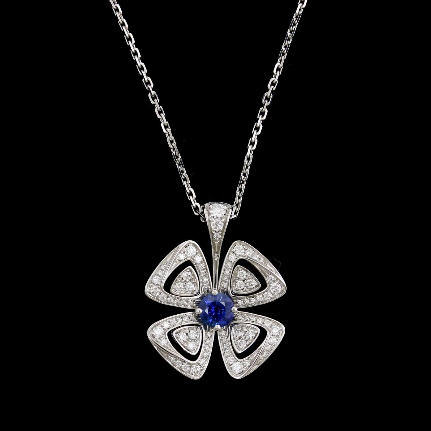 - Bulgari 18K White Gold Estate Diamond and Sapphire Fiorever Pendant