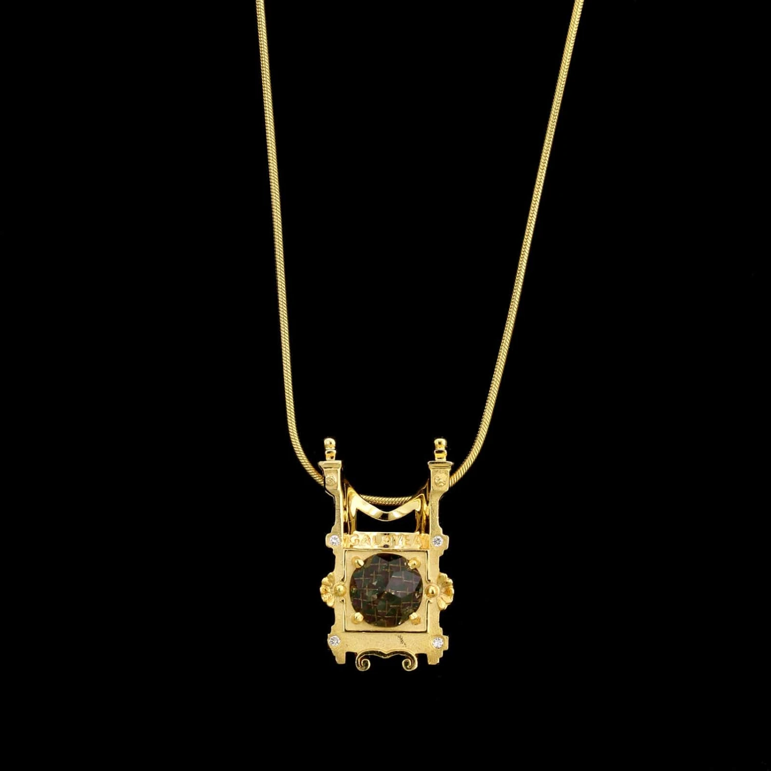 - The pendant is set with one DavinChi cut citrine over two emeralds and two rubies