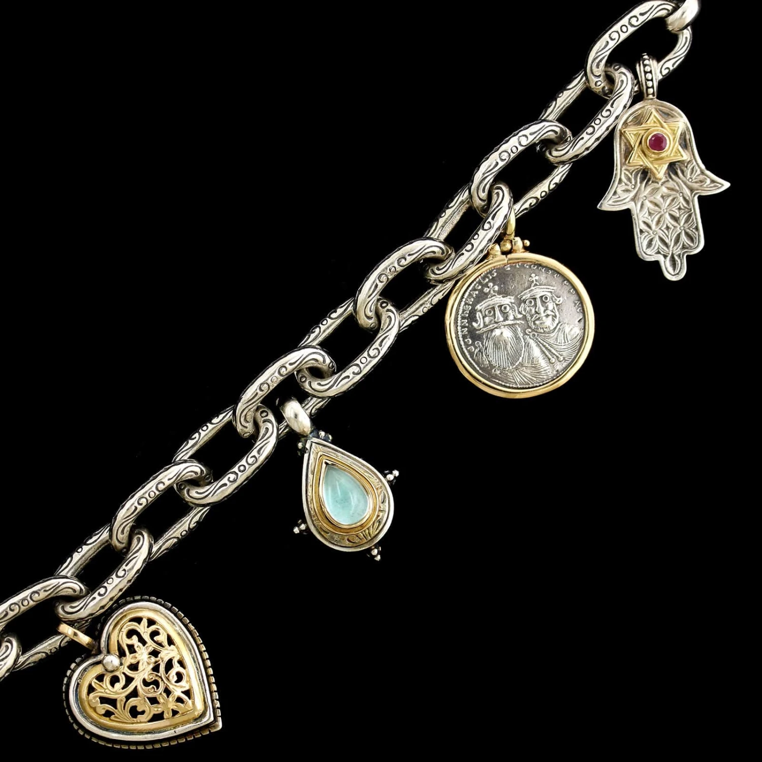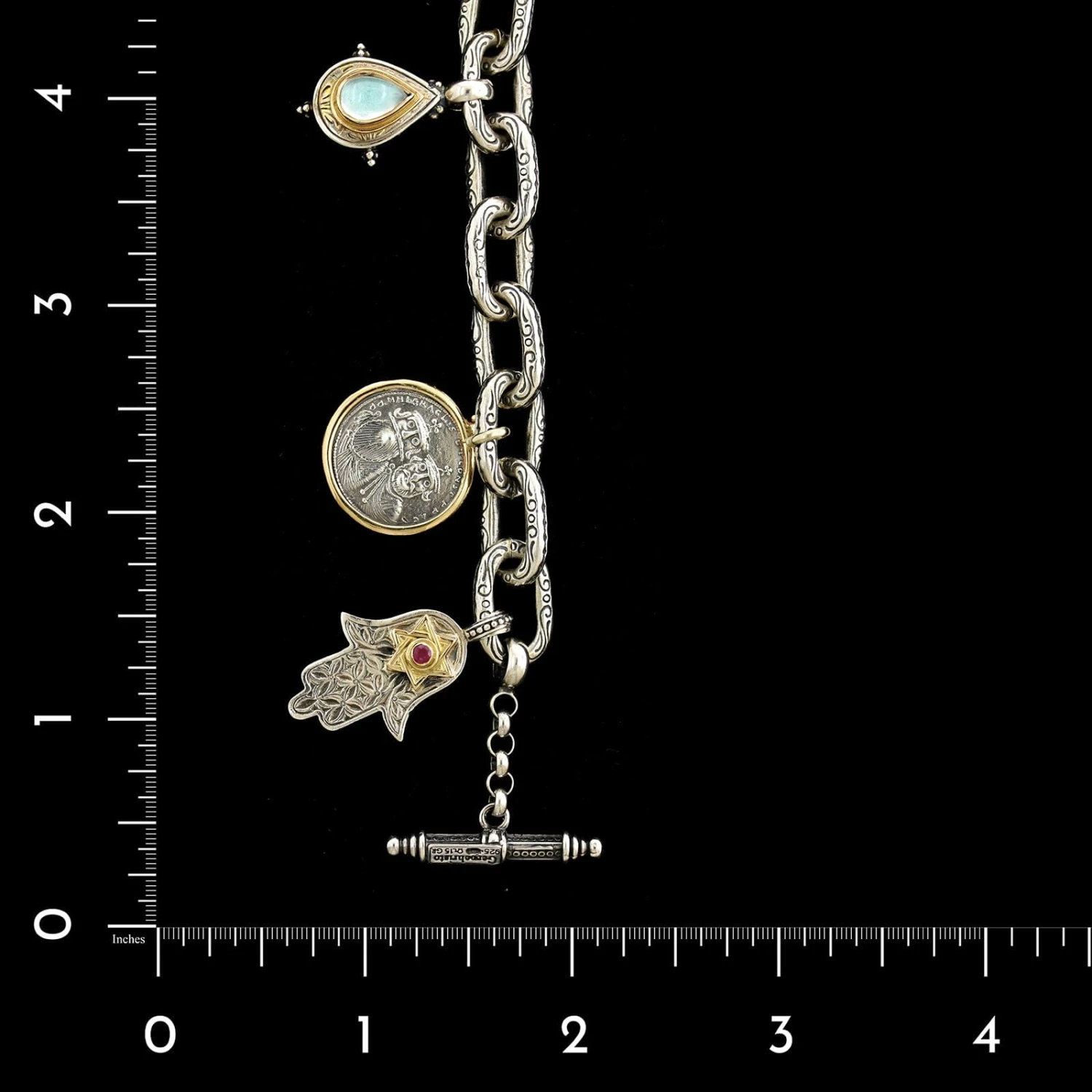- Gerochristo Sterling Silver and 18K Yellow Gold Estate Charm Bracelet