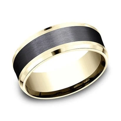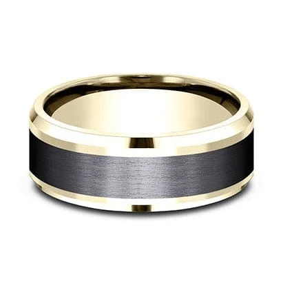 Grey Tantalum And 14K Yellow Gold Satin Finish And Beveled Edge Band