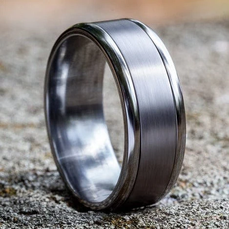 Grey Tantalum Band With A Satin Center And High Polish Edges