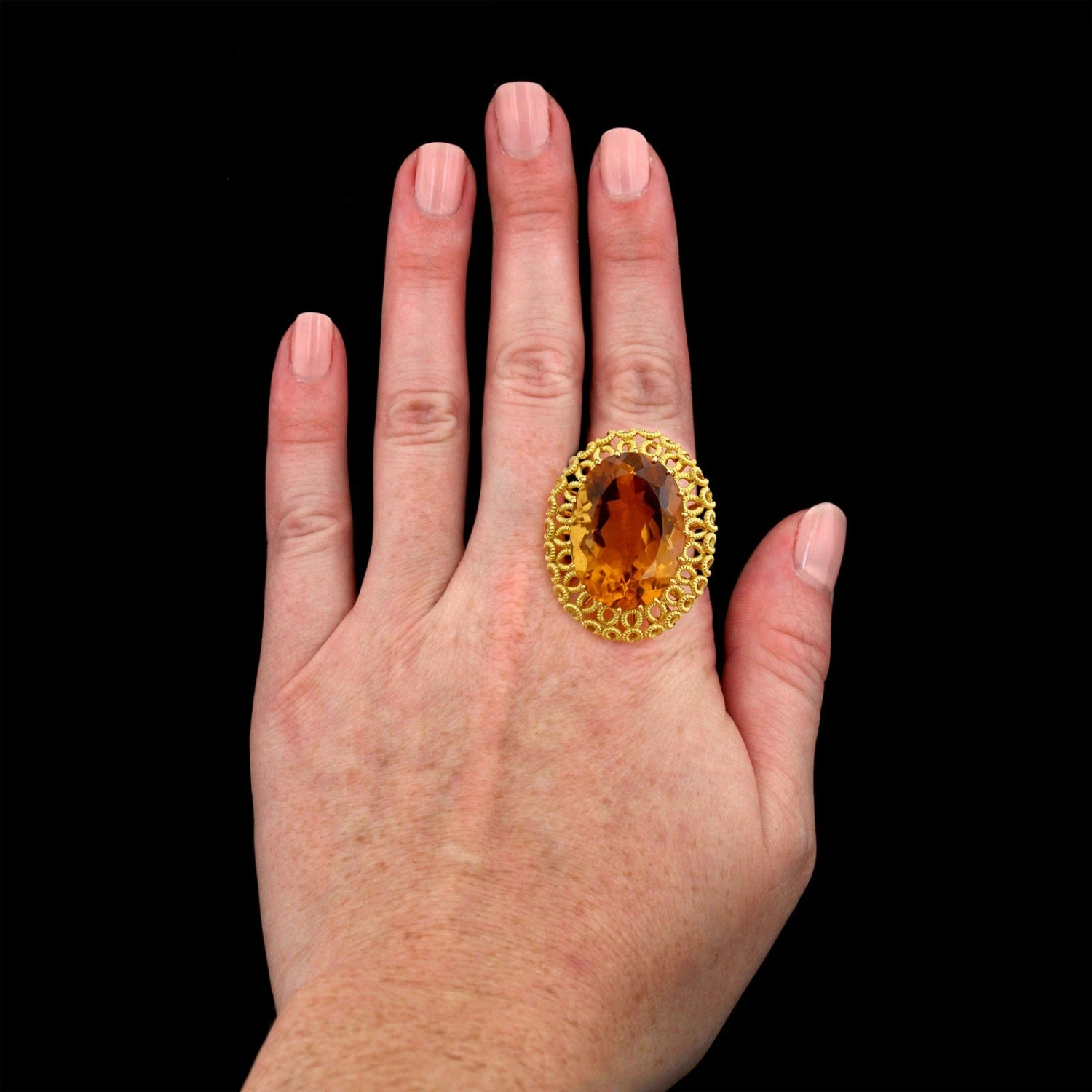 - The ring is set with one oval cut citrine,
