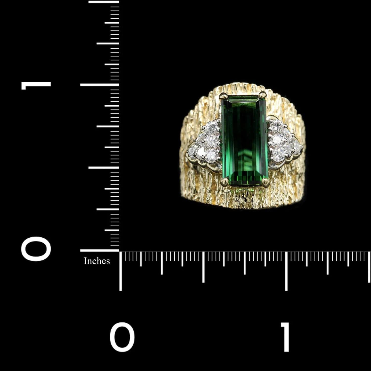 La Triomphe 18K Yellow Gold Estate Green Tourmaline And Diamond Ring