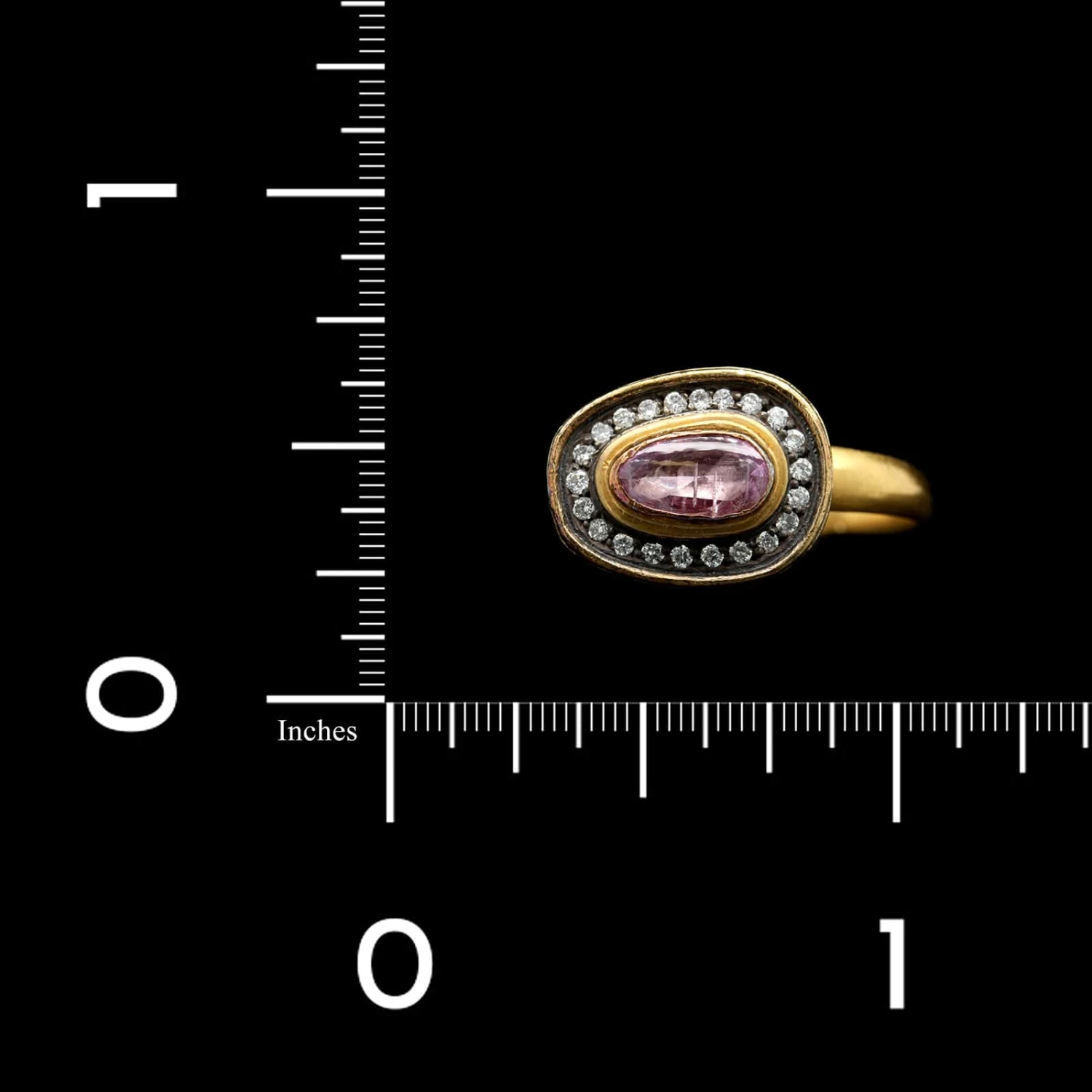 Lika Behar 24K Yellow Gold Estate Pink Sapphire And Diamond Ring
