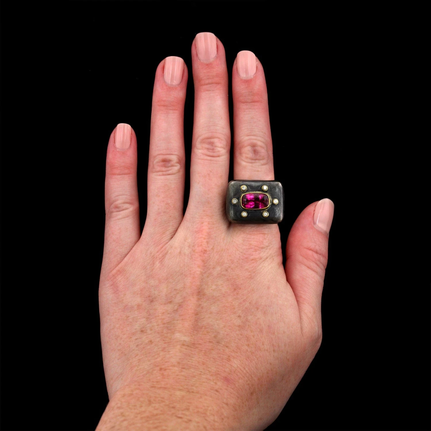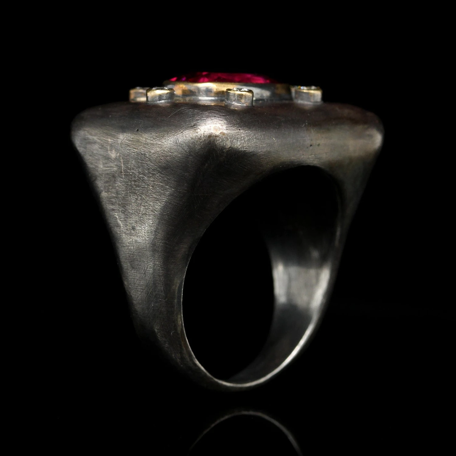 SKU: BG9UZ 7372133400711 Category: Rings Tags: Category: Estate Ring, Designer: Estate Lika Behar, Metal: Sterling Silver, Metal: Yellow Gold, Nonsale, Price: $1000-$2500, Signed Estate Jewelry, Size: Size 8, Stone: Tourmaline, Viva-magenta