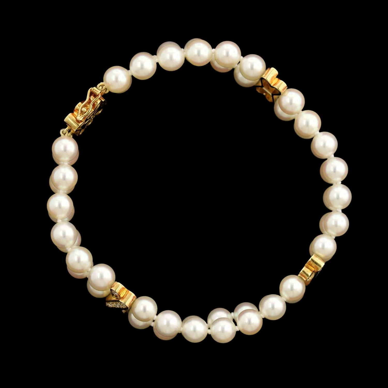 - Mikimoto 18K Yellow Gold Estate Akoya Cultured Pearl and Diamond Bracelet
