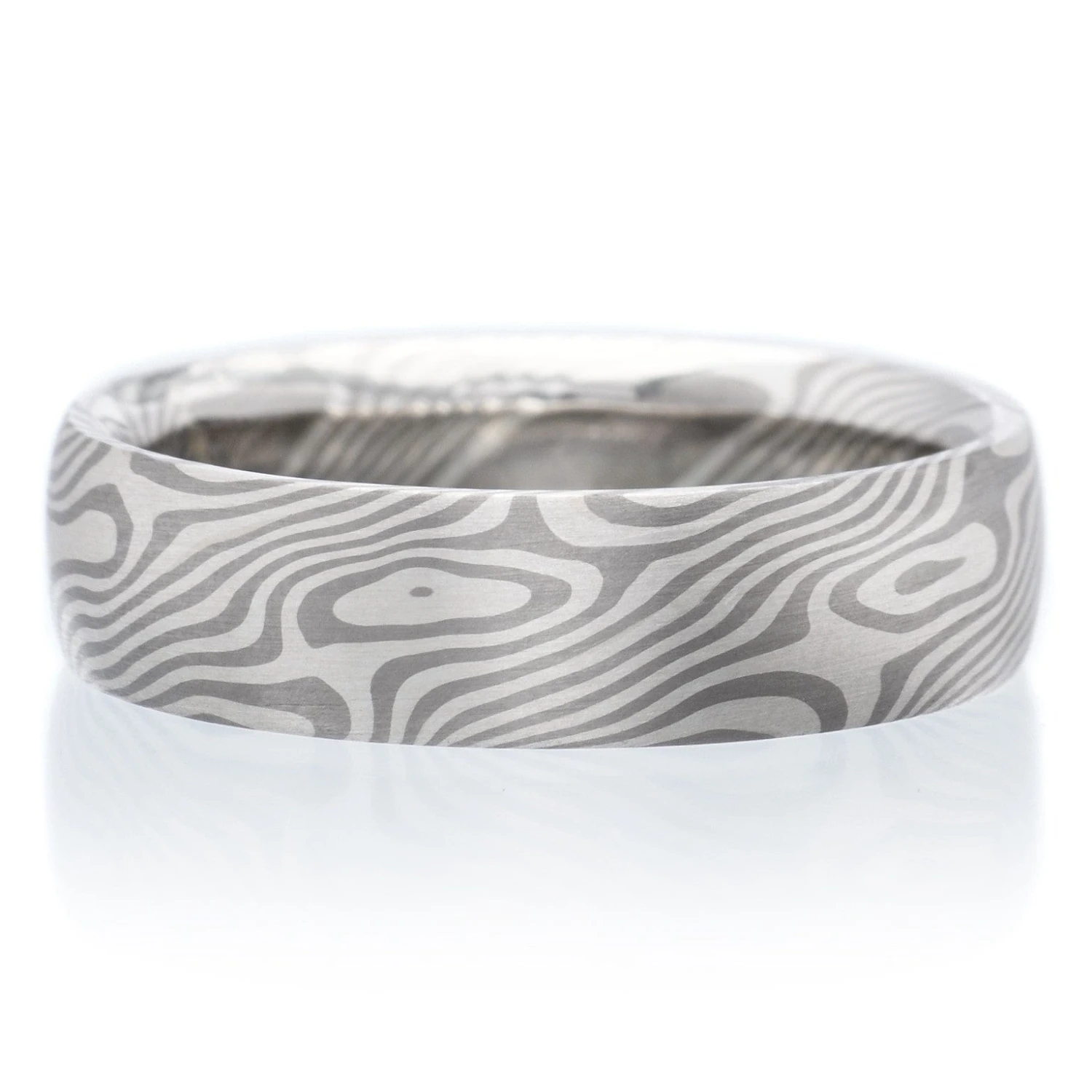 Mokume gane ring, maple pattern alternating layers of palladium 500 and, silver, slightly rounded profile, comfort fit interior.