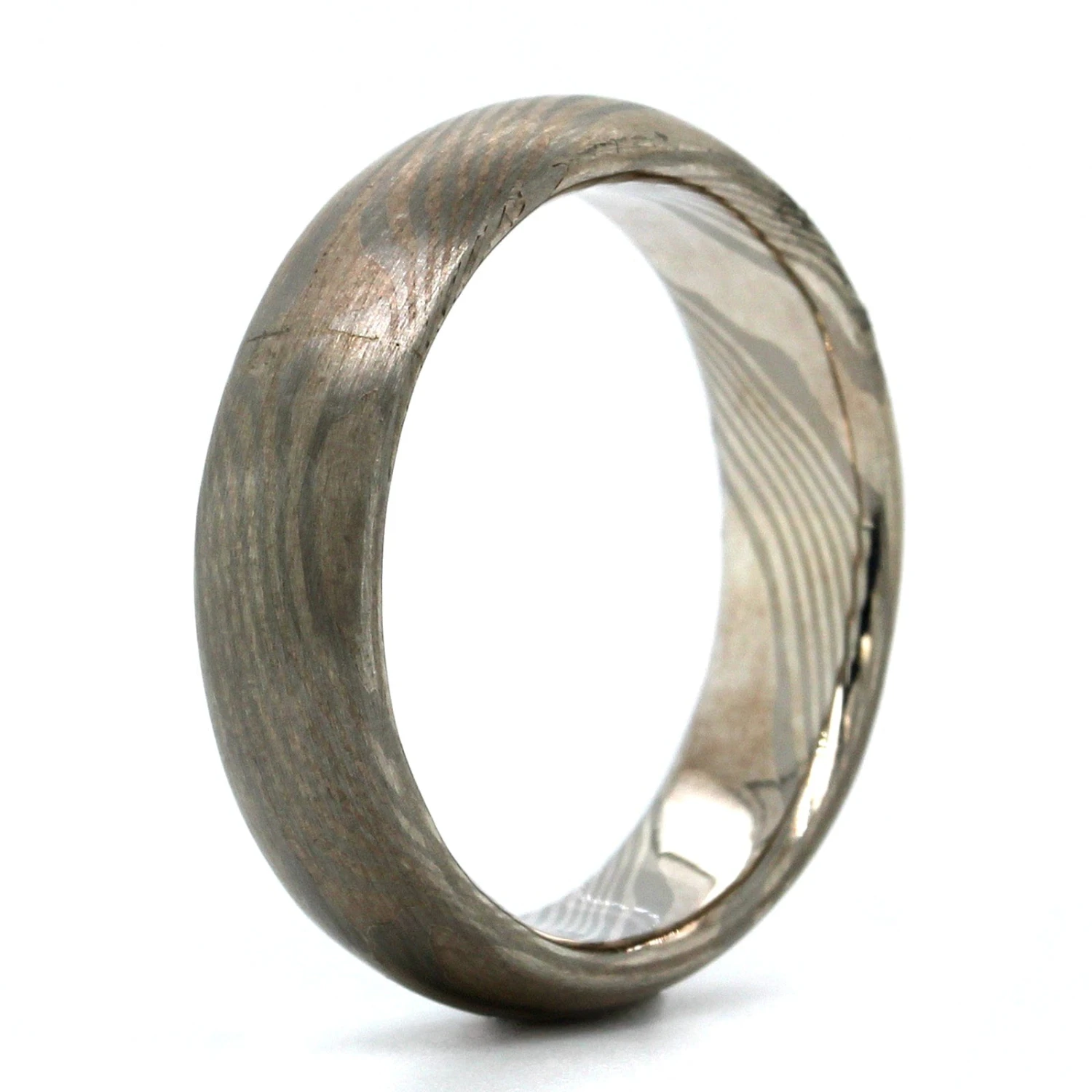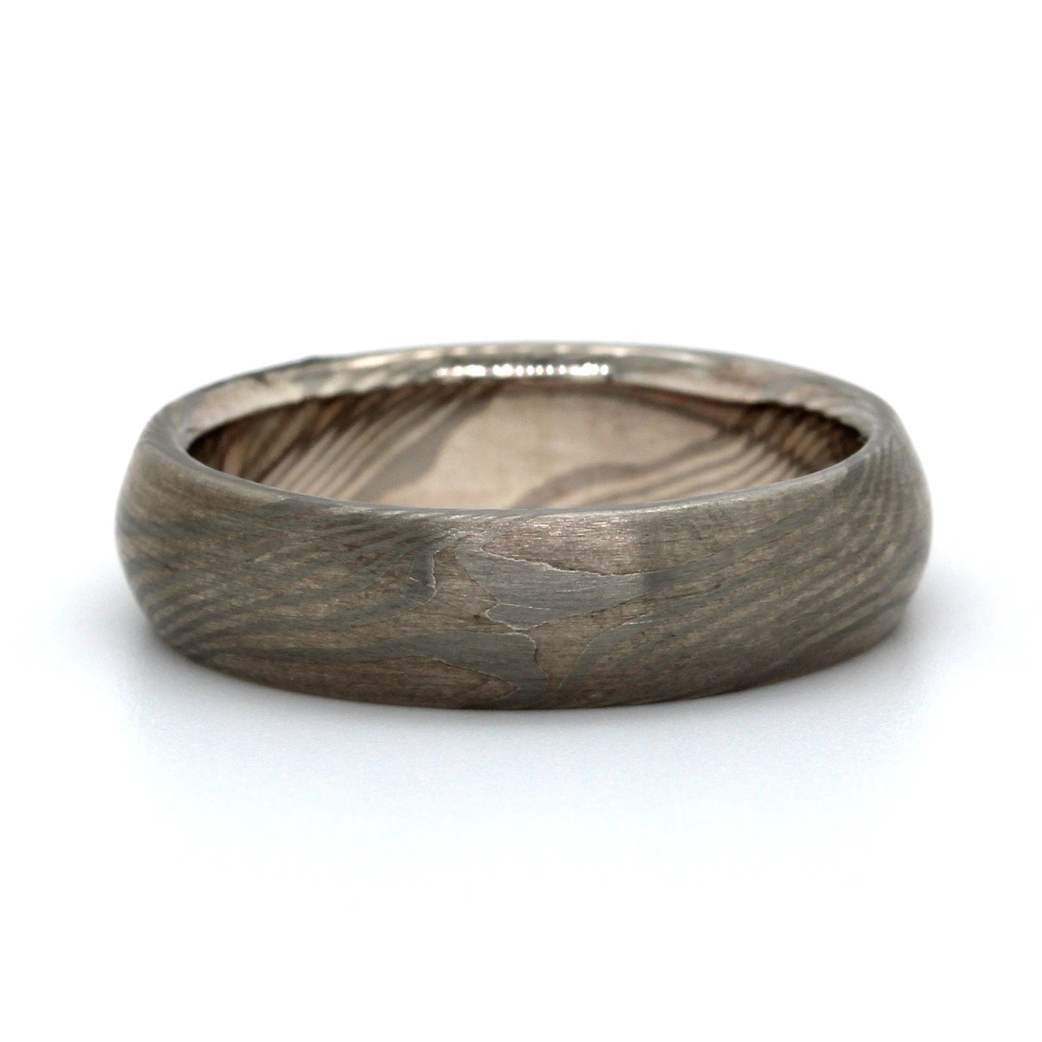 Mokume gane ring ash pattern alternating layers of silver and palladium 500 slightly rounded profile, comfort fit interior.
