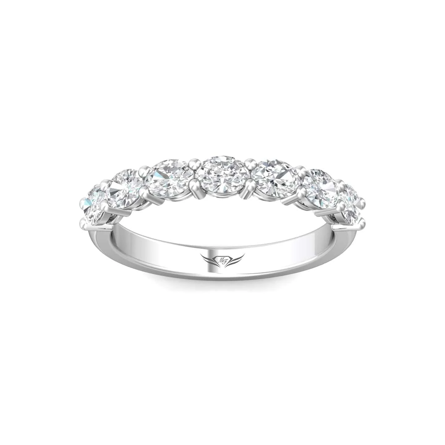 Platinum shared prong band with 7 oval diamonds set east to west.