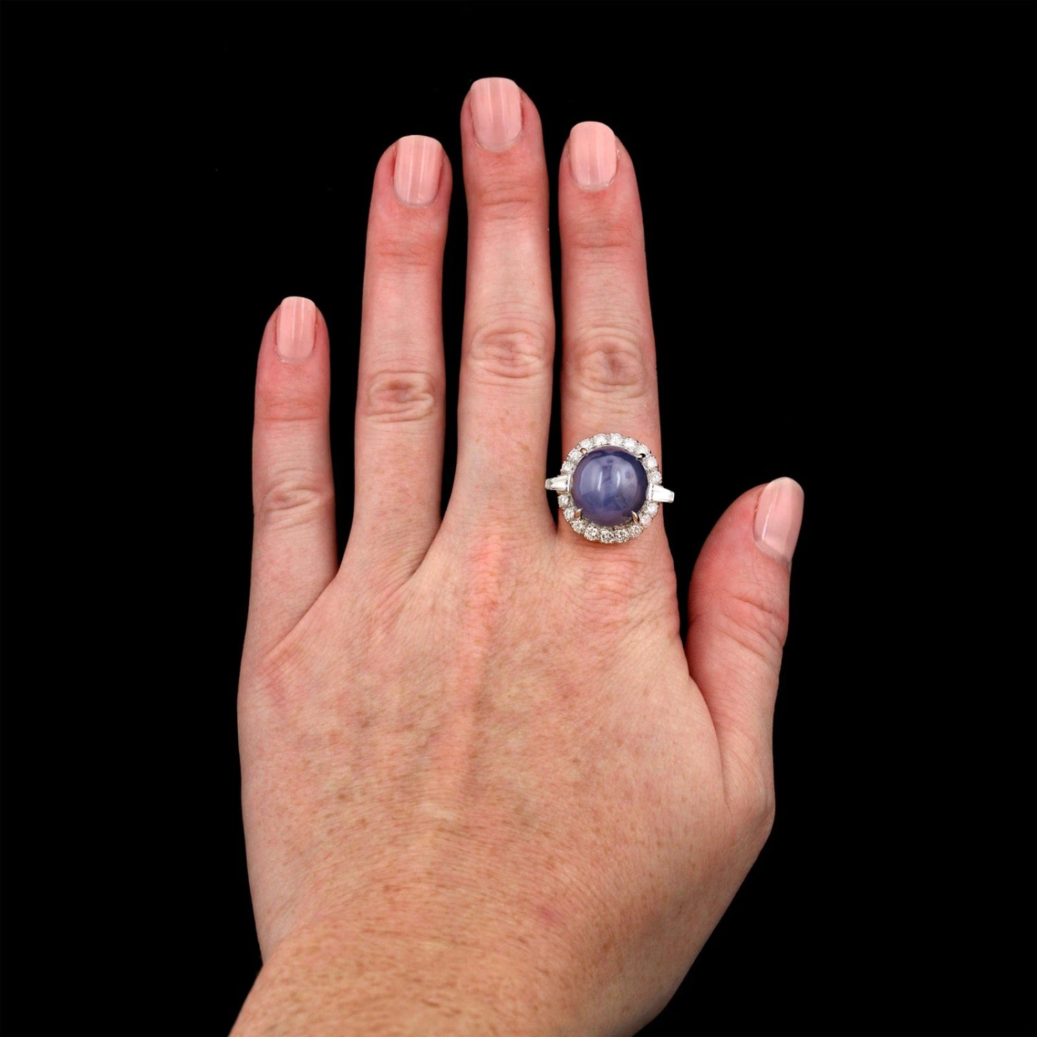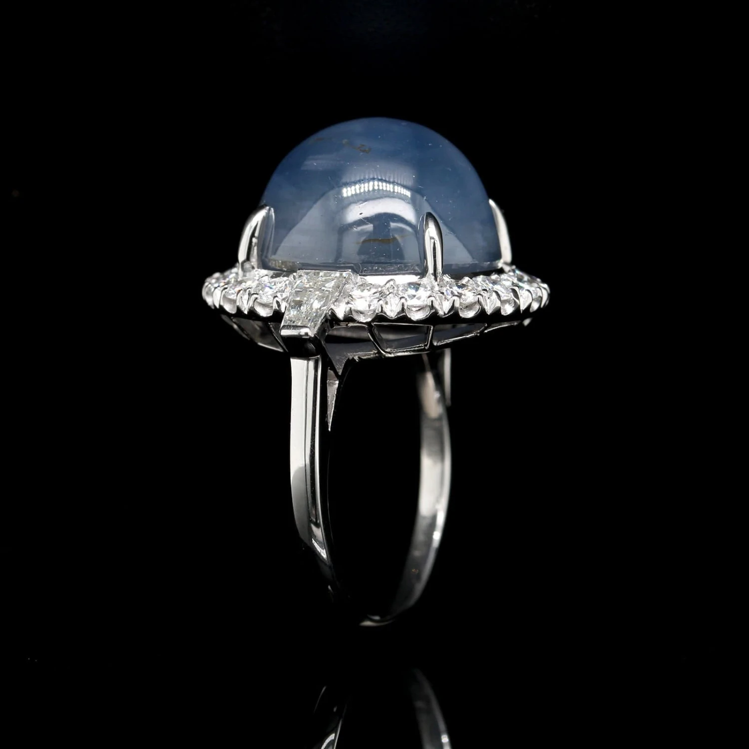 - The ring is set with one oval cabochon star sapphire weighing 24.40cts., AGL# 1130586,