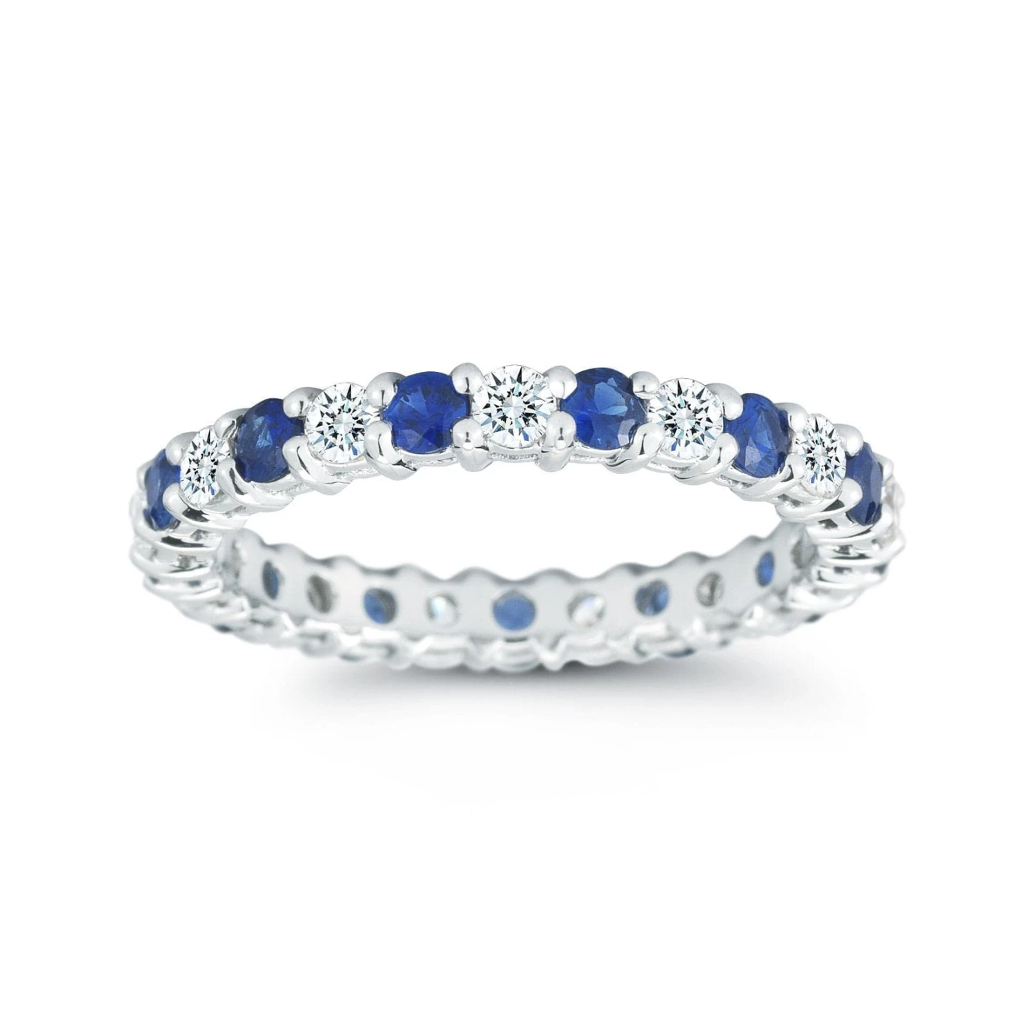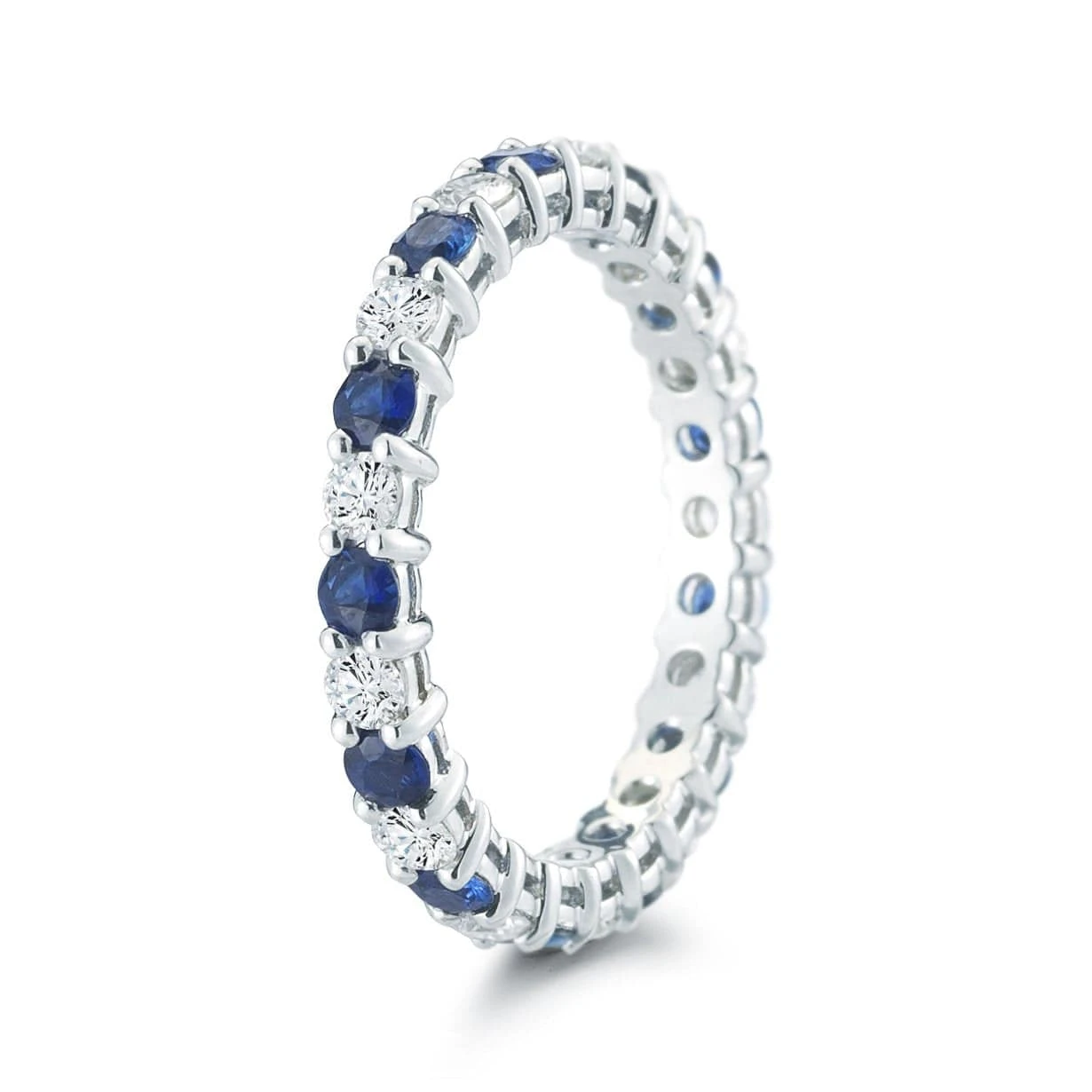 Platinum Shared Prong Diamond And Sapphire Eternity Band
