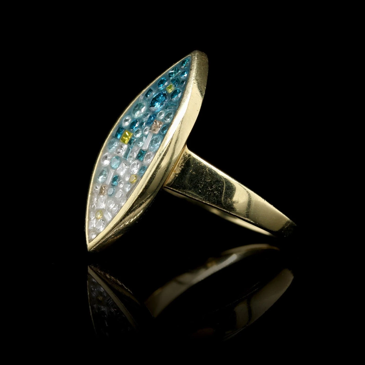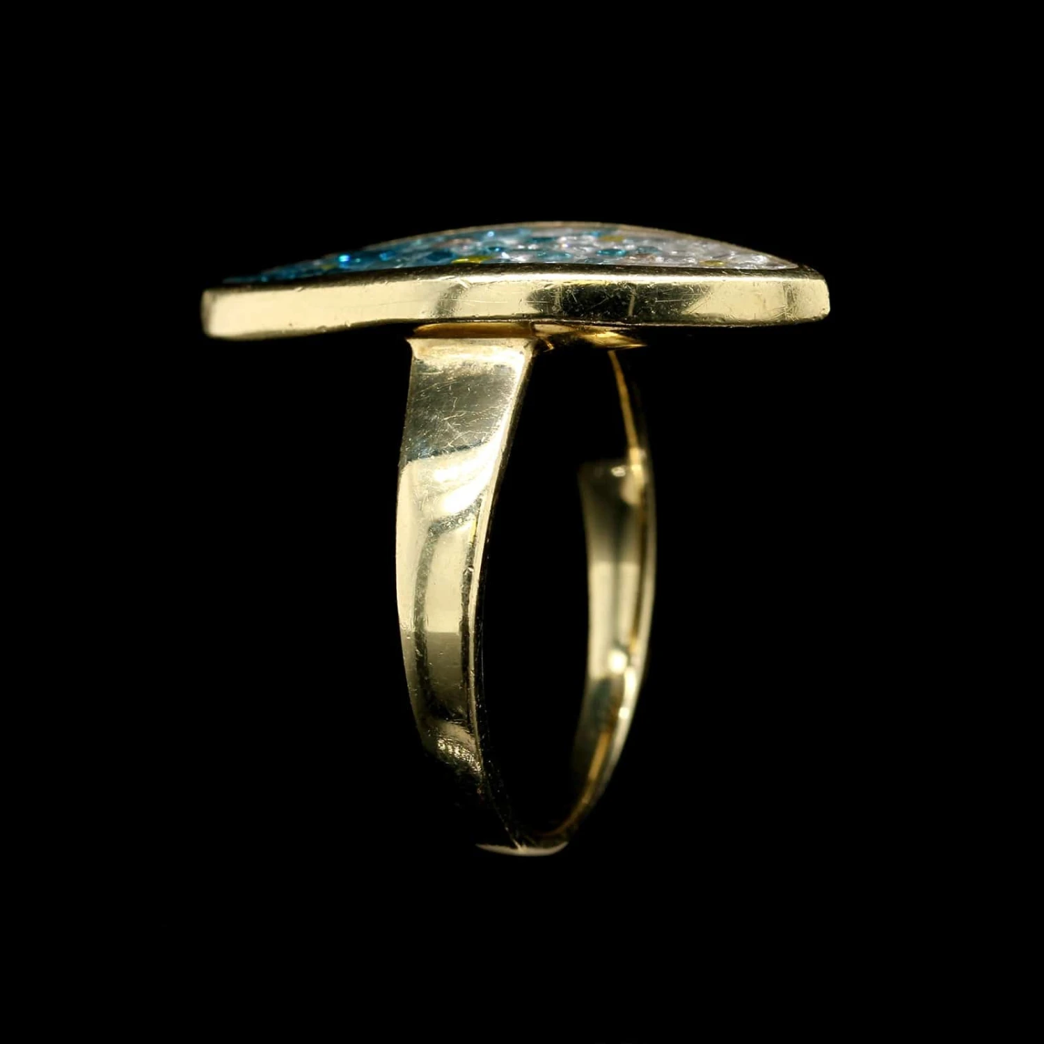 - Pleve 18K Yellow Gold Estate Color Treated Diamond and Resin Mosaic Ring