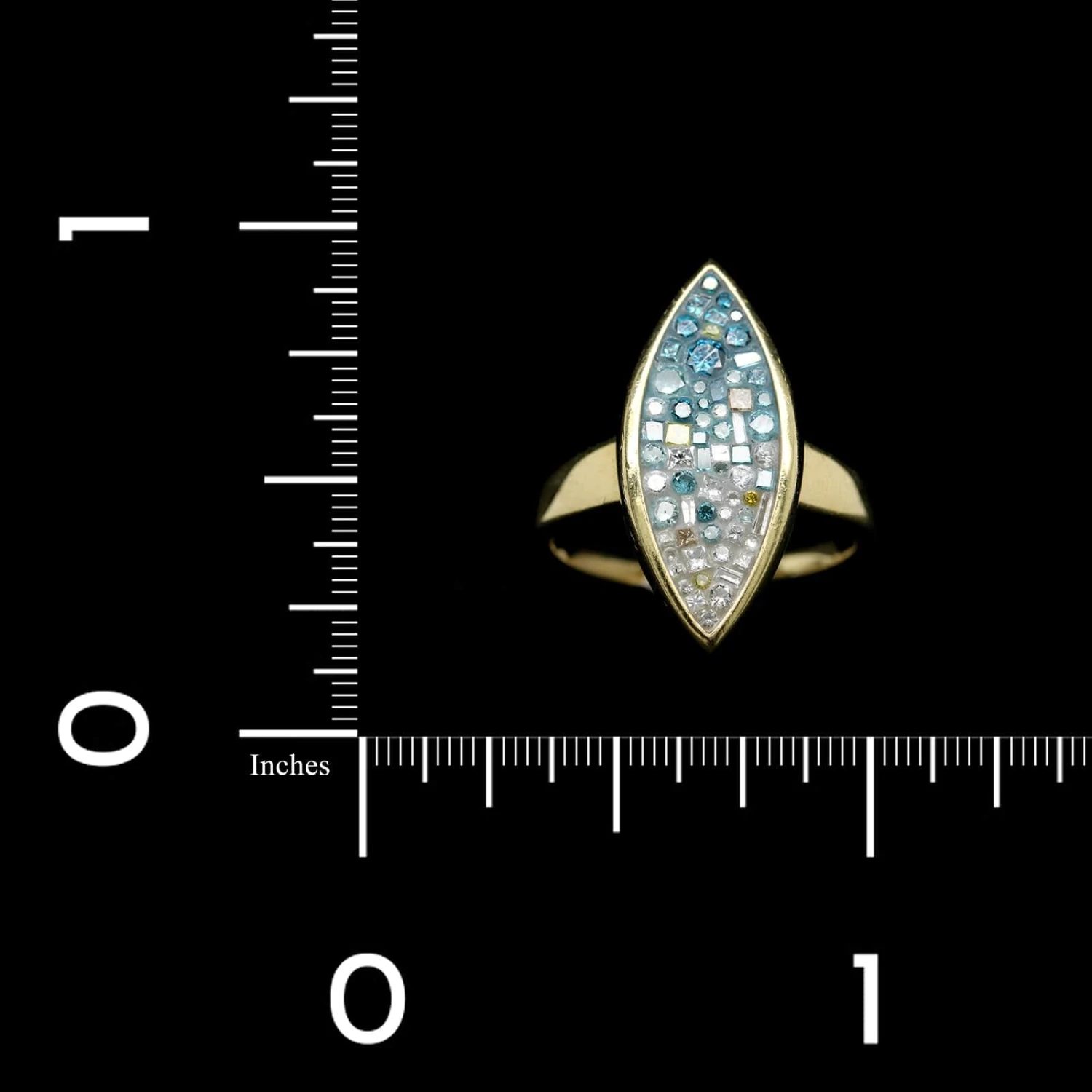 Pleve 18K Yellow Gold Estate Color Treated Diamond And Resin Mosaic Ring