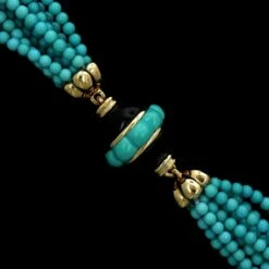 14K Yellow Gold Estate Turquoise Torsade Necklace