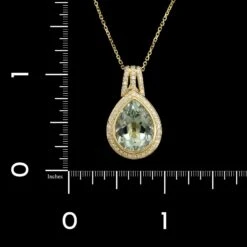 14K Yellow Gold Estate Prasiolite And Diamond Pendant Necklace