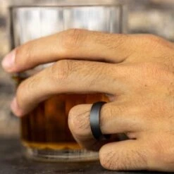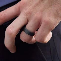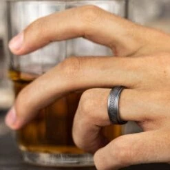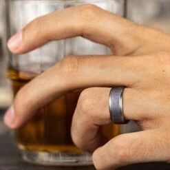 Grey Tantalum And 14k White Gold Band With A Satin Finish Center And High Polish Drop Bevel Edges
