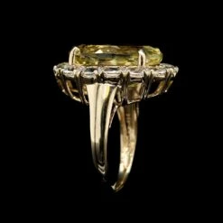 14K Yellow Gold Estate Chrysoberyl And Diamond Hand Engraved Ring