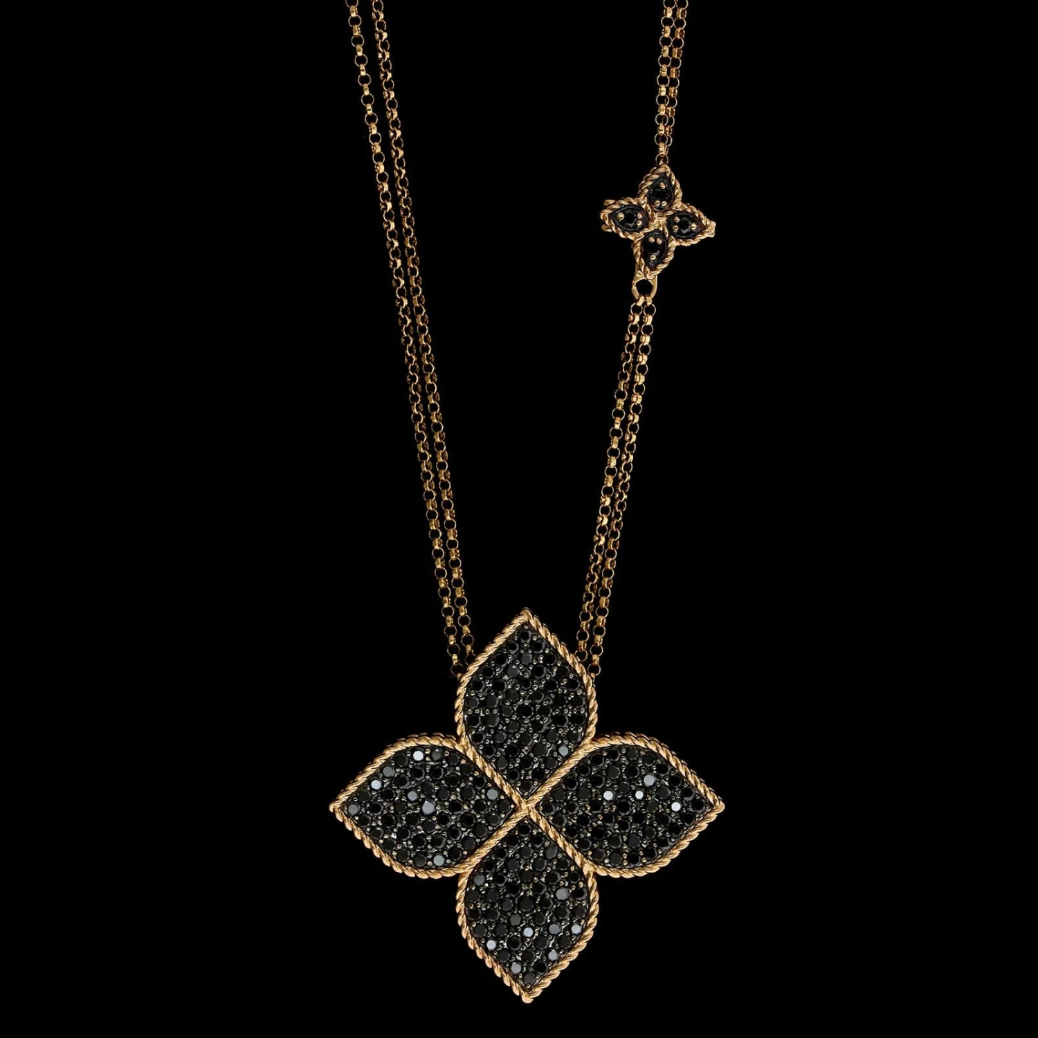 - Roberto Coin 18K Rose Gold Estate Princess Flower Black Diamonds Pendant NecklaceÂ