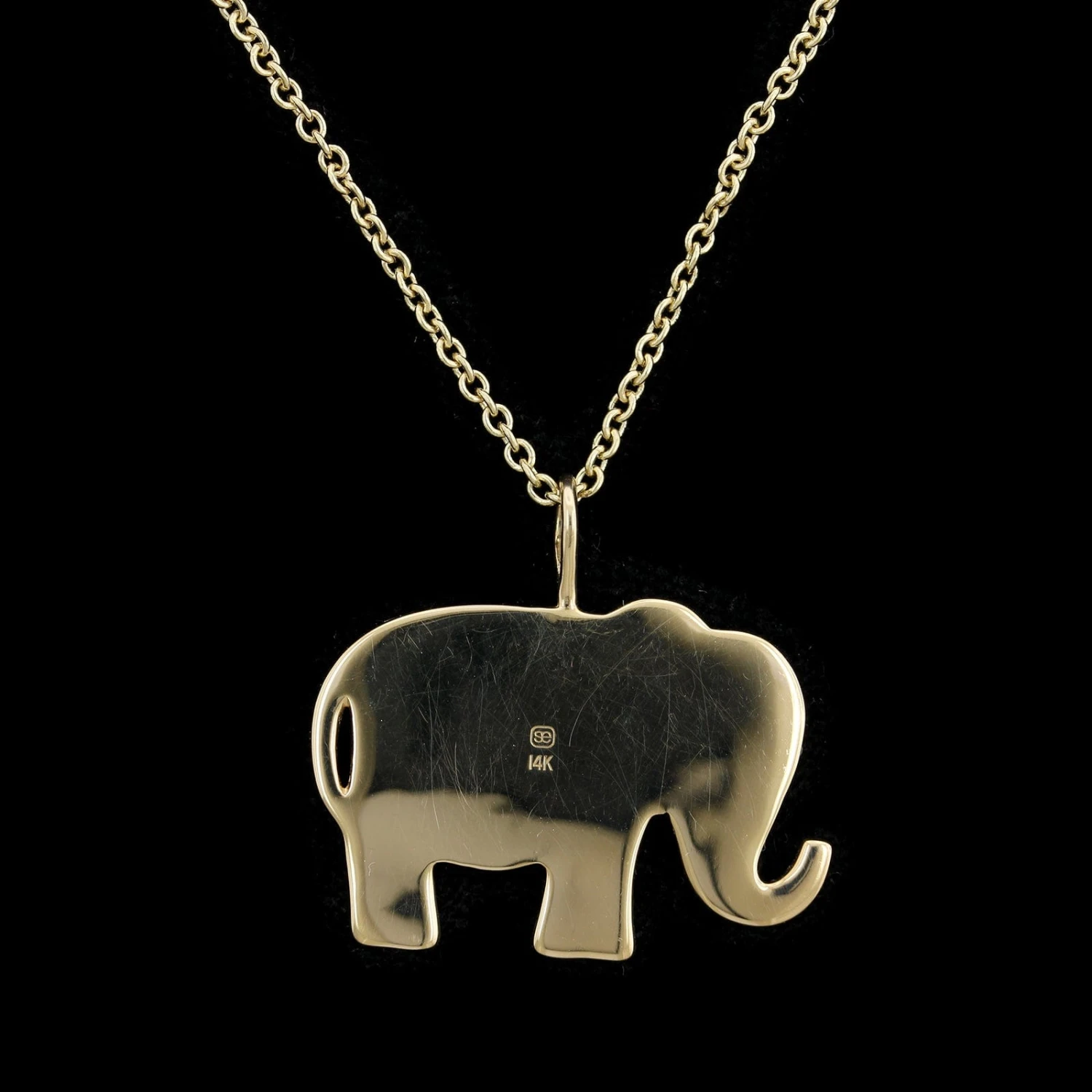 - Sydney Evan 14K Yellow Gold Estate Large Diamond Elephant Pendant Necklace