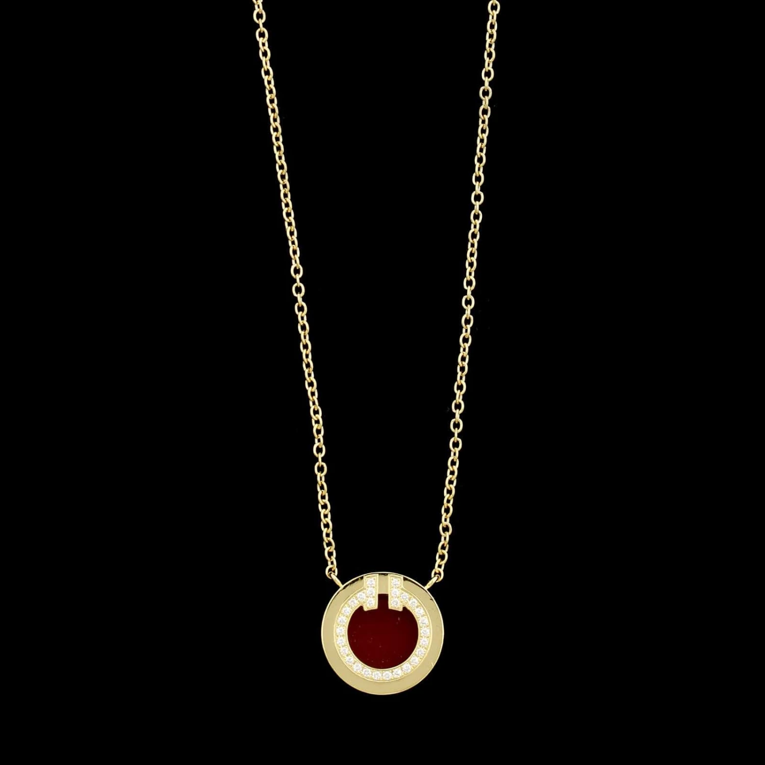 - Tiffany & Co. 18K Yellow Gold Estate Carnelian and Diamond T Circle Pendant