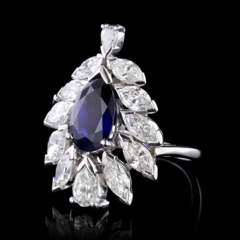 - The ring is set with a pear shaped sapphire weighing 1.96cts. (actual)
