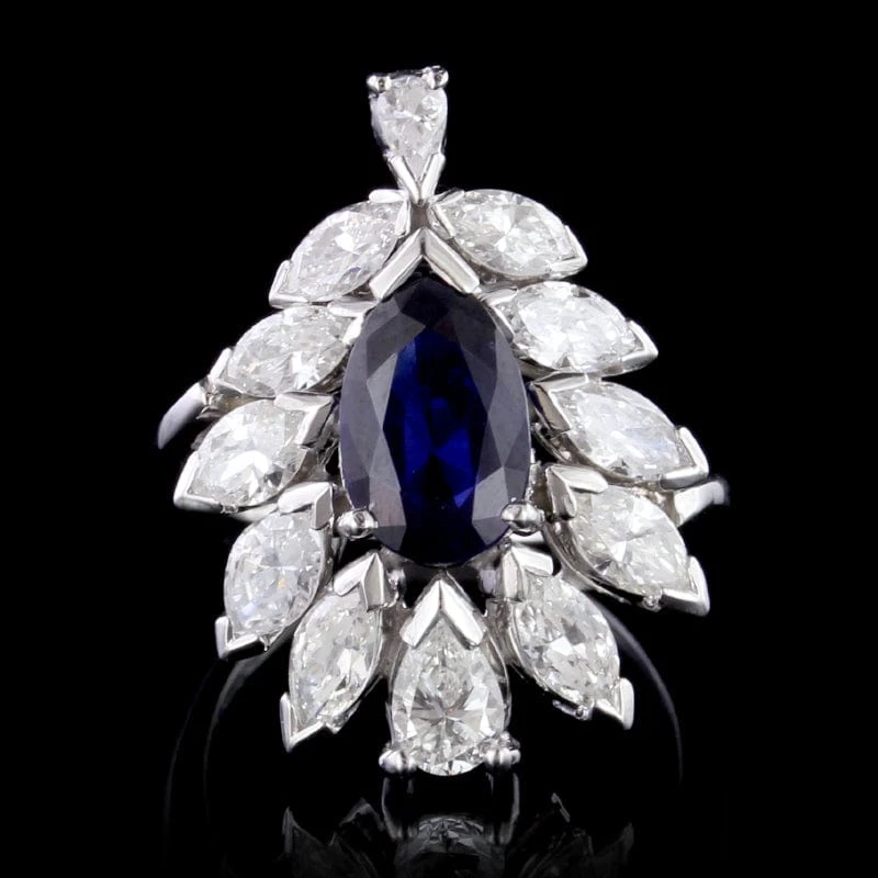 SKU: BG9UZ 564790394928 Category: Rings Tags: Category: Estate Ring, Designer: Long's Estate Collection, Estate Over $500 Google Shopping, Metal: White Gold, Nonsale, Price: $5000-$10000, Size 5 3/4, Size: Size 5 3/4, Stone: Diamond, Stone: Sapphire, Style: Vintage, Vintage