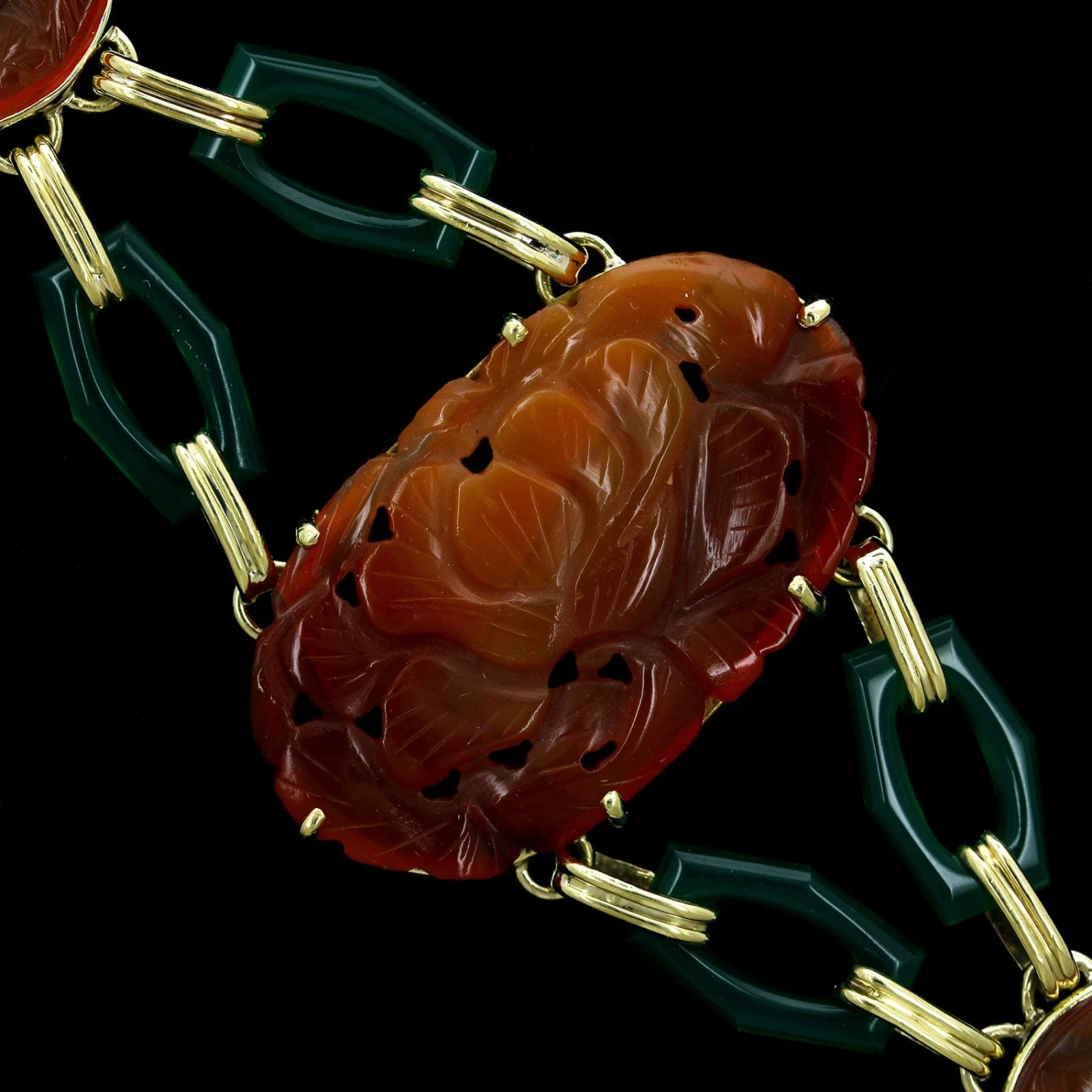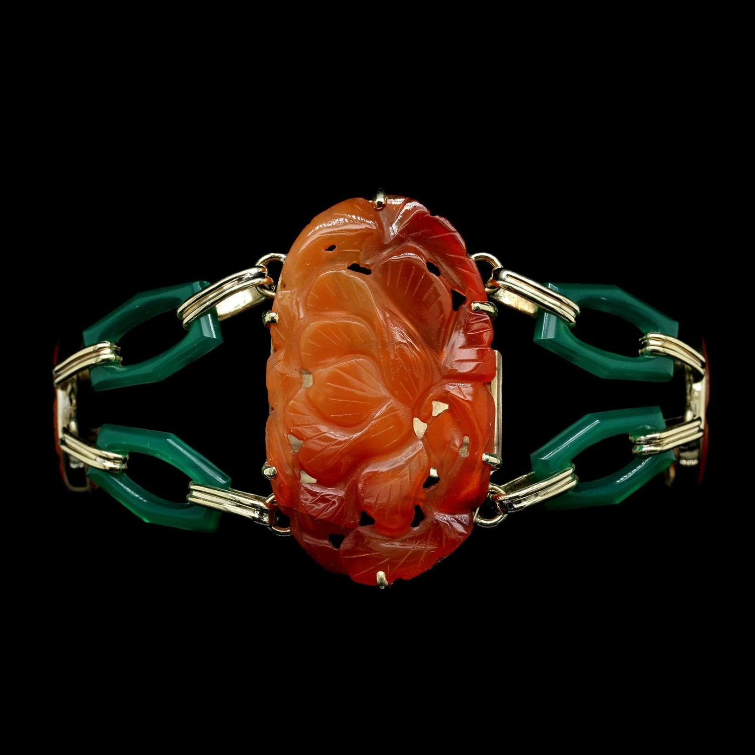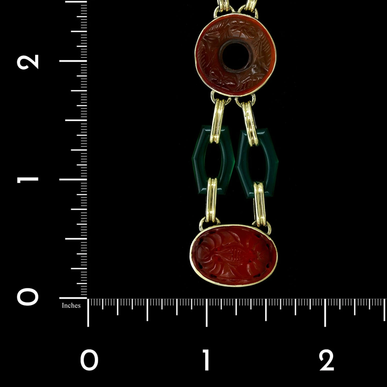 - Vintage Walter Lampl 14K Yellow Gold Estate, Carnelian and Dyed Green Chalcedony